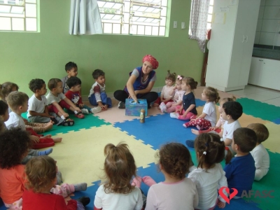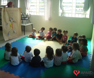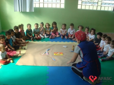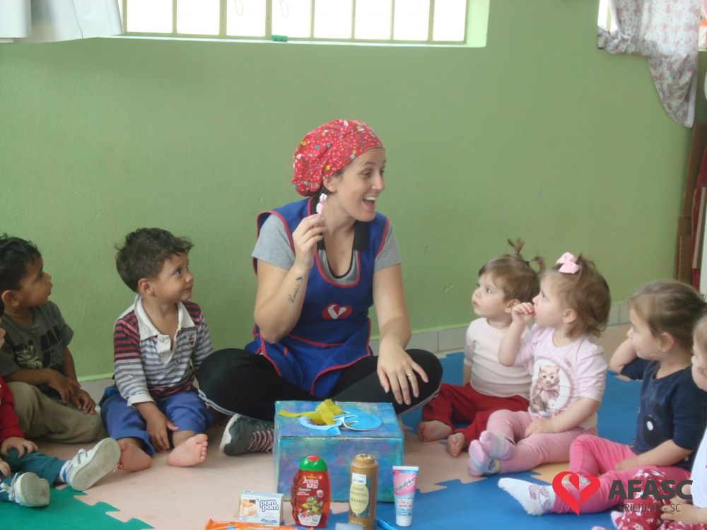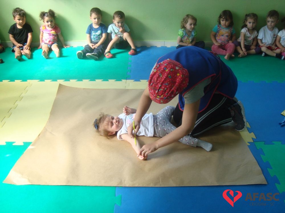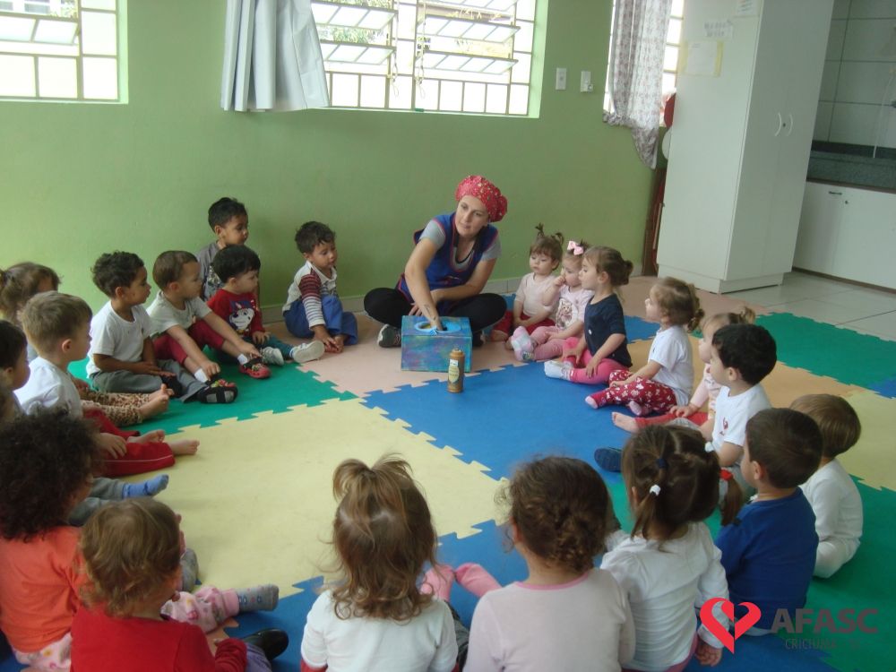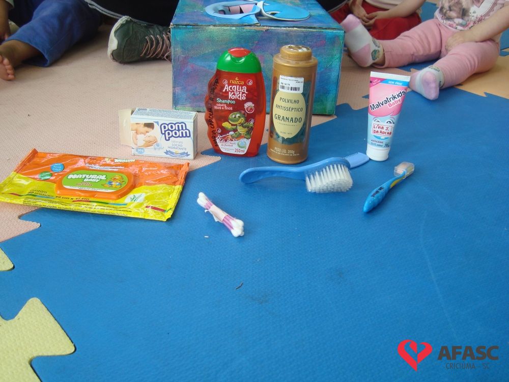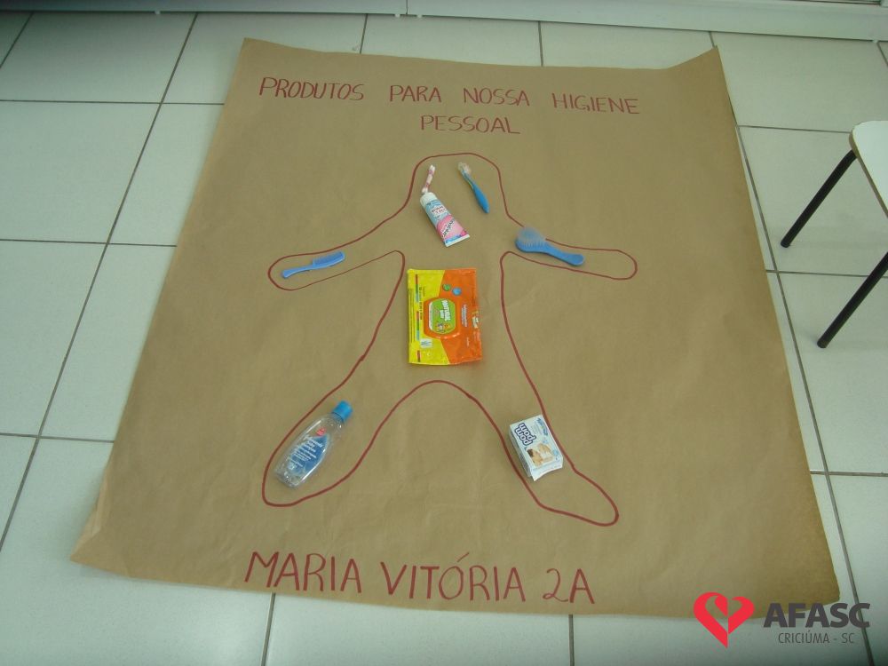 Estimular o cuidado com o corpo, bem como propiciar conhecimento dos produtos de higiene pessoal, utilizando estratégias lúdicas, que favorecem a linguagem e o cuidado próprio. Assim, foi o desenvolvimento da atividade “Caixa Surpresa”, que trouxe para as crianças do Grupo II A do Centro de Educação Infantil (CEI) da Associação Feminina de Assistência Social de Criciúma (Afasc) Zulma Naspolini Manique Barreto, muito conhecimento sobre higiene pessoal e os problemas que a falta dela causam para a saúde. O exercício que faz parte do projeto “Minha vida mais saudável”, foi realizado pelas professoras Juliana Florentino e Jessica Cordova, que apresentaram os produtos utilizados para higienização e confeccionaram uma boneca em papel pardo, que possibilitou que as crianças colocassem os materiais onde deveria ser utilizados.