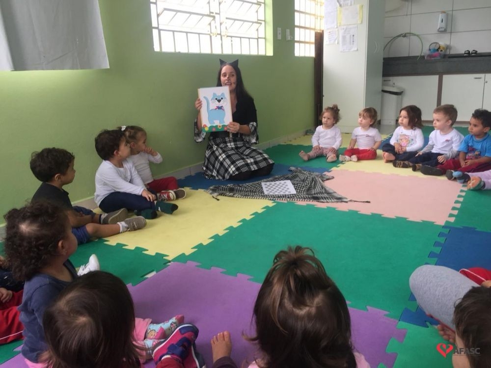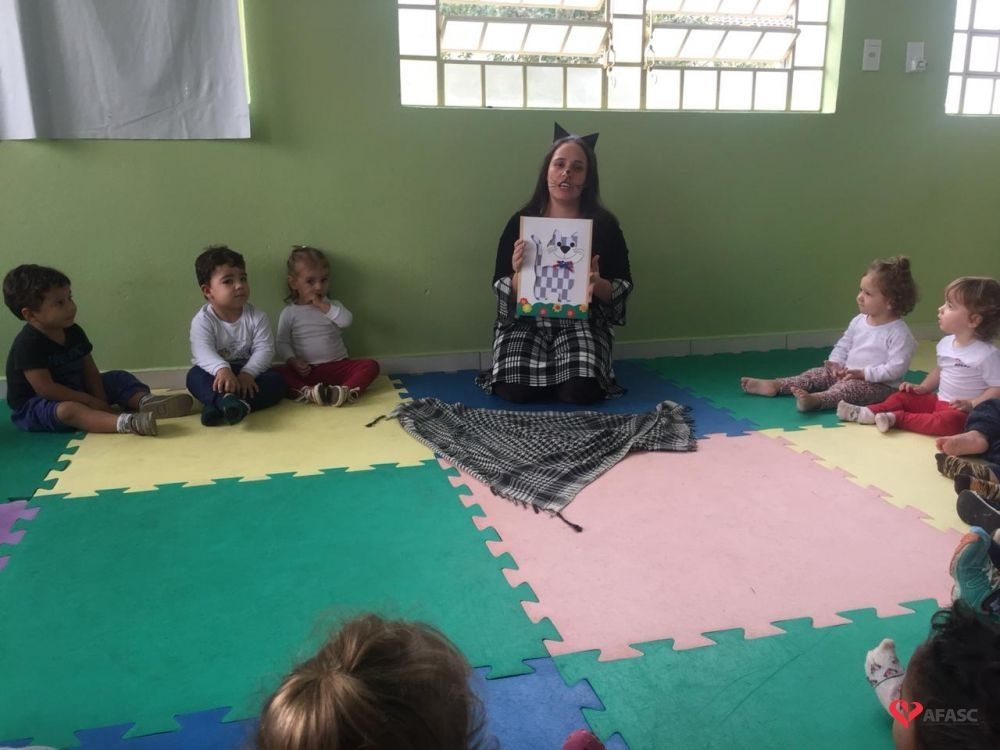 Quanto mais cedo as crianças tiverem contato com os livros e perceberem o prazer que a leitura traz, maiores serão as chances de torna-las adultas leitoras, pensantes e críticos socialmente ativos. Pensando desta forma as professoras Aline Pacheco, Maria Alice Rosso e Nicoli Bendo, que atuam no Grupo 2 A do Centro de Educação Infantil (CEI) da Associação Feminina de Assistência Social de Criciúma (Afasc) Zulma Naspolini Manique Barreto, realizaram a contação de história “O Gato Xadrez”.