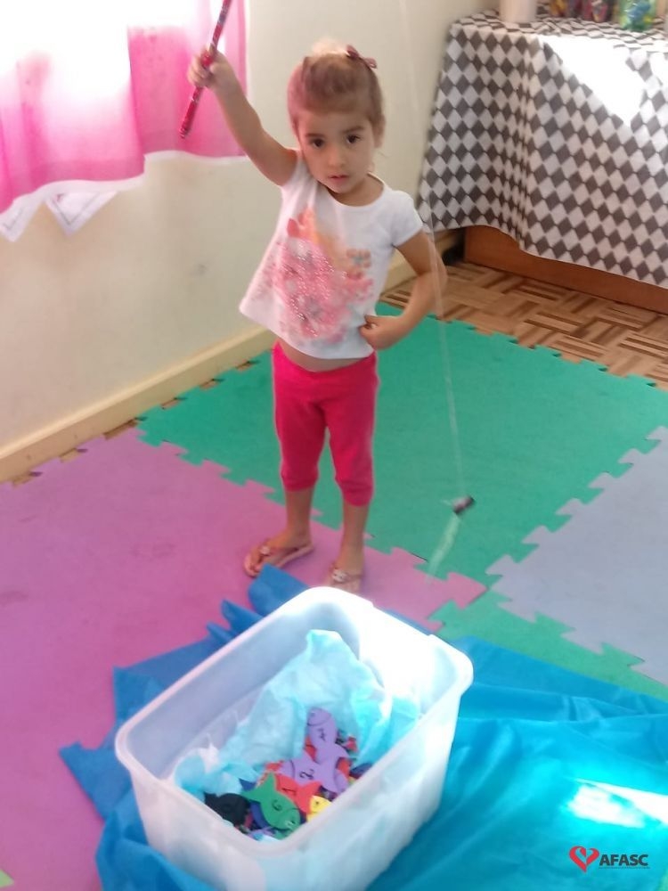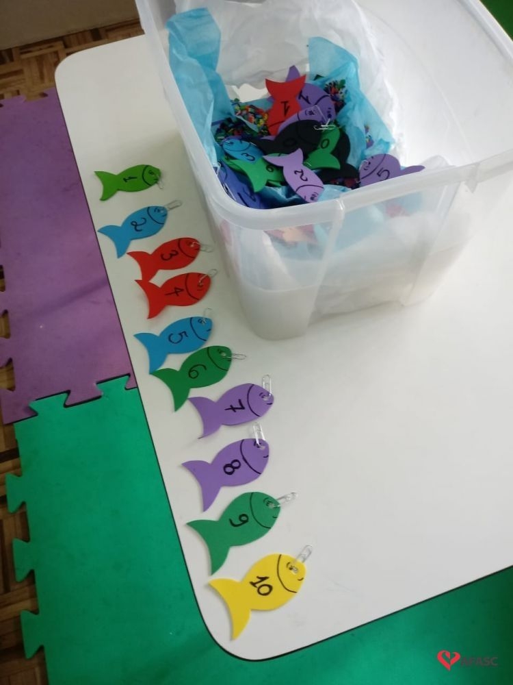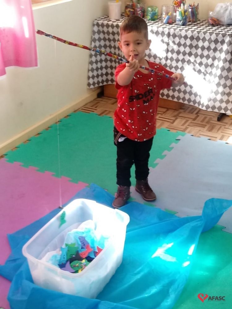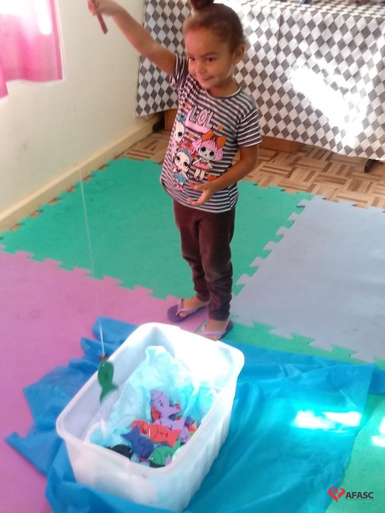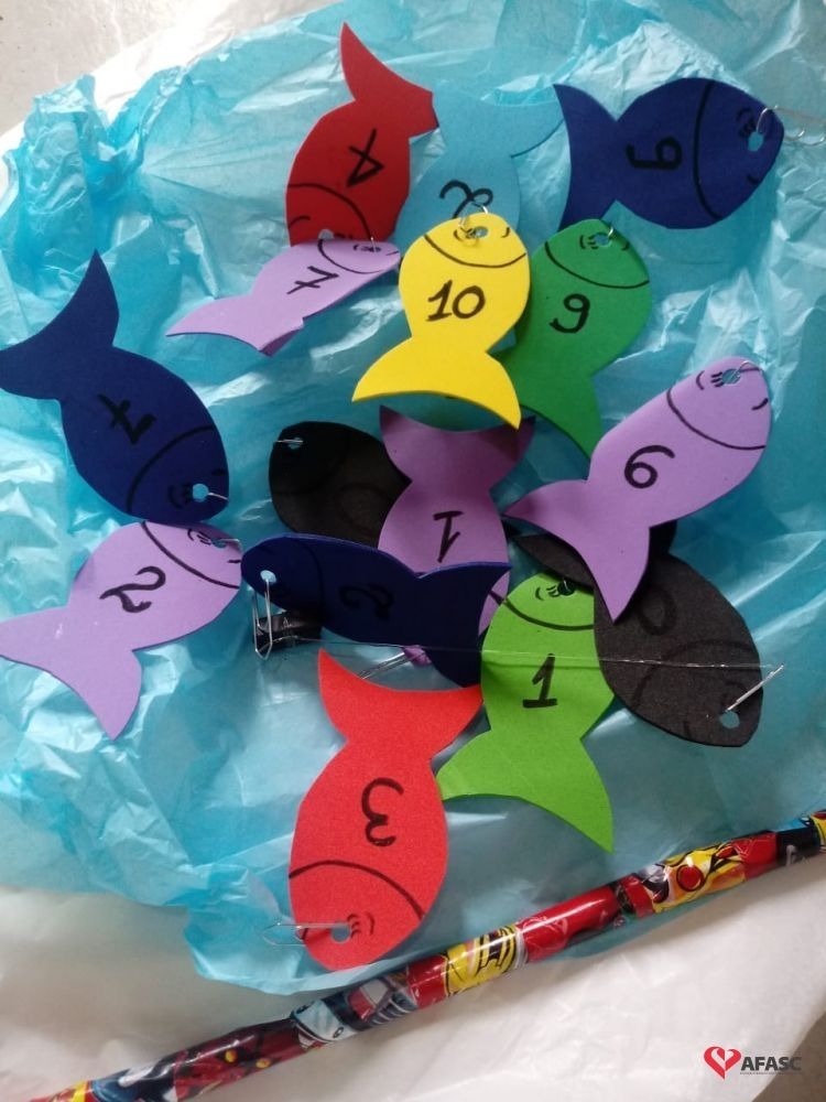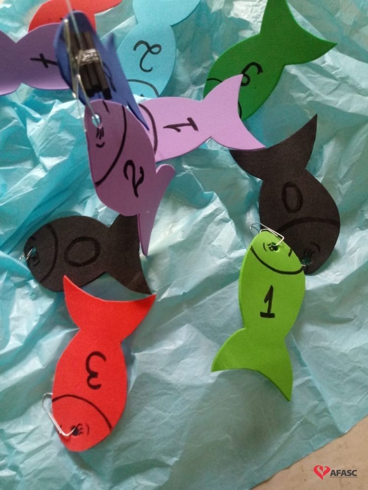 Por meio da atividade “A pescaria dos números”, as professoras do Grupo 4 B do Centro de Educação Infantil (CEI) da Associação Feminina de Assistência Social de Criciúma (Afasc) Beato Aníbal Maria di Frância, Ana Rubia Goulart e Jadna Marques, ensinaram de forma divertida a importância de conhecer os números no dia a dia.