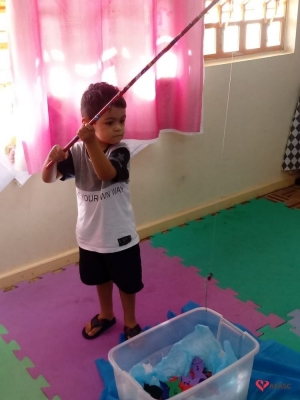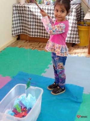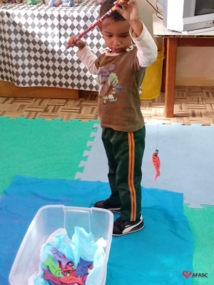 Jogo de pescaria ensina número para as crianças do Grupo IV do CEI Afasc Beato Aníbal Maria di Frância