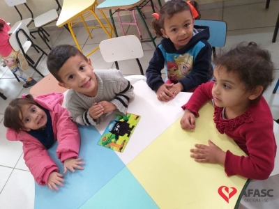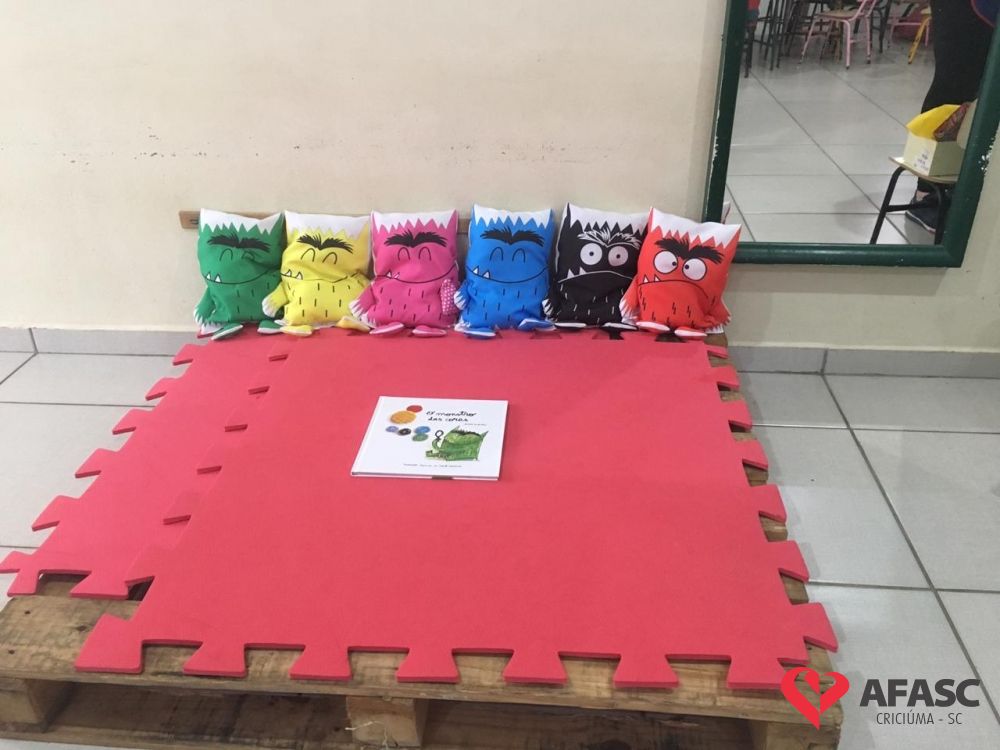 “O monstro das cores não sabe o que está acontecendo com ele. Suas emoções estão embaralhadas e agora ele precisa organizá-las”. Essa foi a história especial contada para as crianças do Grupo III B do Centro de Educação Infantil (CEI) da Associação Feminina de Assistência Social de Criciúma (Afasc) Gerda Becke Machado, pelas professoras Carolina Marcondes e Suelen Danielski, por meio do livro “O monstro das cores”, de Ana Llenas, que trouxeram para sala de aula o tema “Trabalhando as cores por meio da leitura e emoções”.