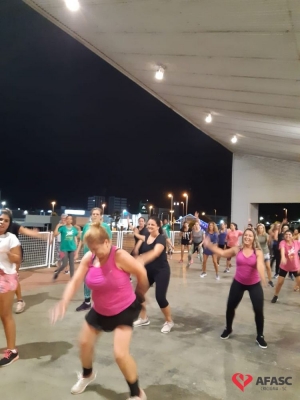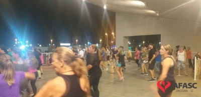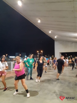 Coreografias motivantes e simples, misturando vários ritmos, que trazem um benefício enorme para a saúde dos participantes. Tudo isso foi mostrado pela equipe do Programa da Associação Feminina de Assistência Social de Criciúma (Afasc) Ritmo e Saúde, no Parque das Nações na noite dessa quinta-feira (27), para as pessoas que passaram pelo local. Alguns populares, além de receberam panfleto com orientações sobre as aulas, participaram das atividades desenvolvidas pelos profissionais.