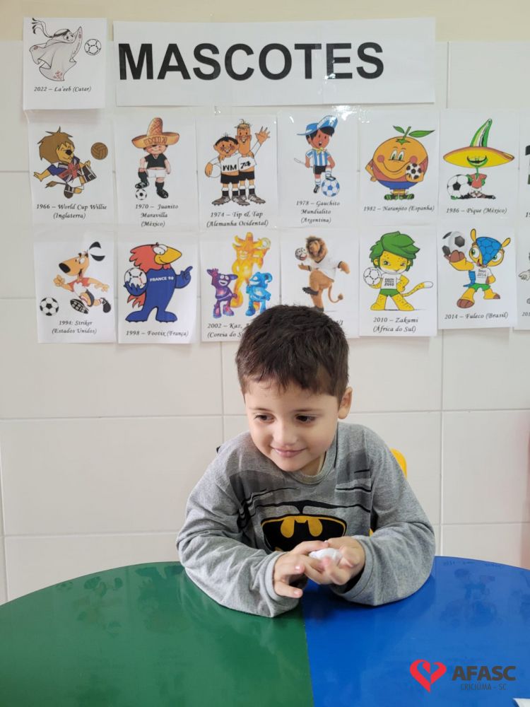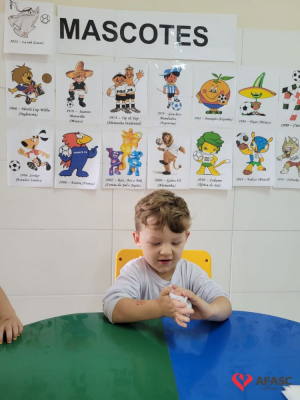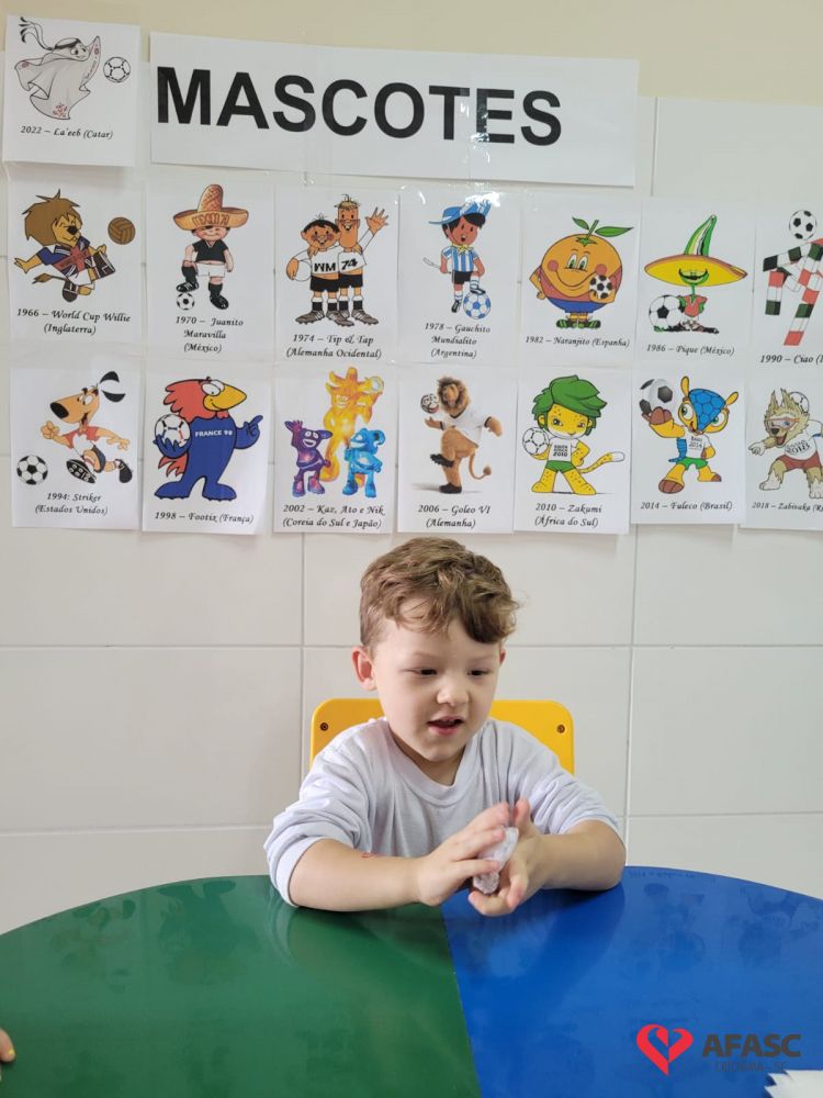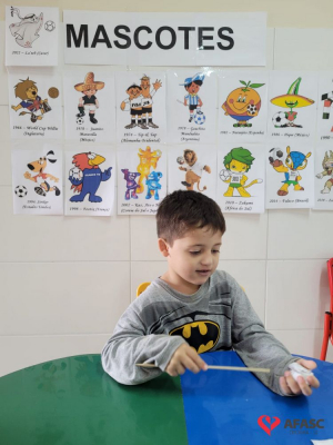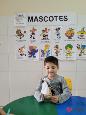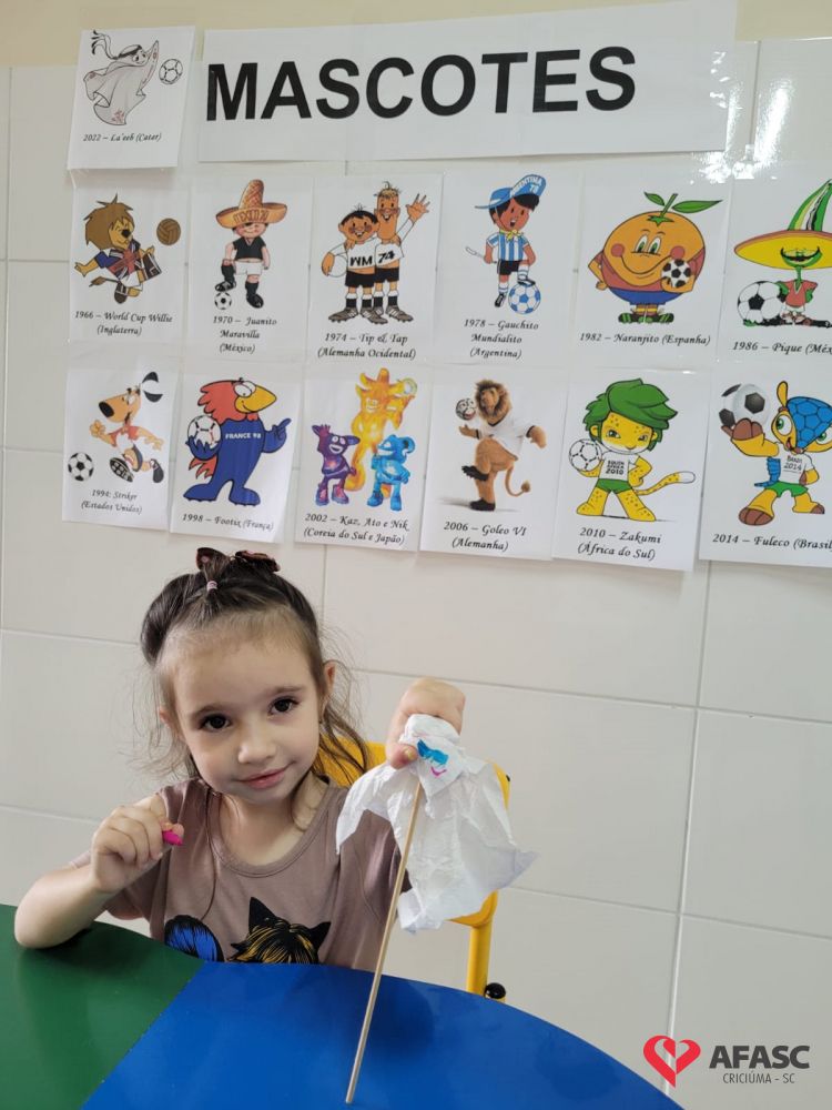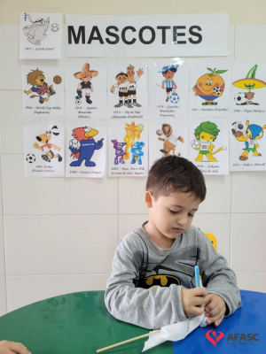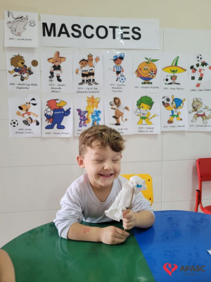 O futebol é uma das maiores paixões do povo brasileiro. Quando se fala sobre os jogos da seleção brasileira, todos ficam atentos para torcer e acompanhar esse grande evento mundial. No CEI Afasc Morro Estevão não é diferente. As crianças do Grupo 4, além de assistir aos jogos, estão conhecendo mais sobre a história dos mascotes das Copas do Mundo, em especial o La’eeb que representa o Catar nessa edição da competição.