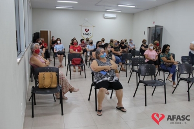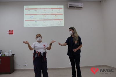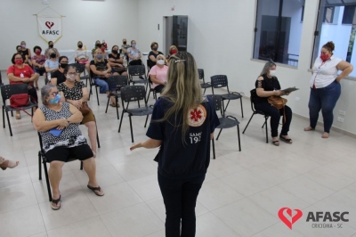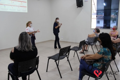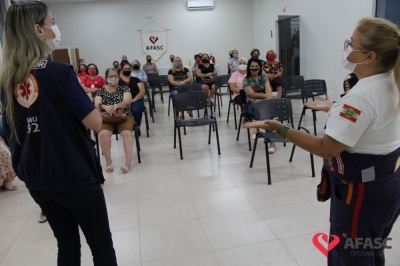 As monitoras dos Clubes de Mães da Afasc passaram por capacitação com a equipe do Educa SAMU nesta quinta-feira (25), na sede da instituição. Durante o encontro, as profissionais que passarão a realizar atendimento remoto (via redes sociais e whatsapp) e nos pontos de apoio disponibilizados pelo departamento a partir de segunda-feira, 1º de março, no Parque das Nações, sede da Afasc no Pio Corrêa e sala térrea da antiga Prefeitura, receberam orientações sobre medidas de prevenção da Covid-19 e primeiros socorros.