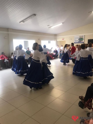 As participantes da oficina de dança do Centro de Convivência da Terceira Idade (CCTI) estiveram nesta sexta-feira (1º), no Asilo São Vicente de Paulo, onde levaram muita alegria, boa conversa e apresentaram coreografias ensaiadas durante as aulas. Toda a visita foi acompanhada pelos professores do serviço, Anderson Felisberto e Alfredo Kaique.