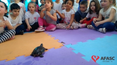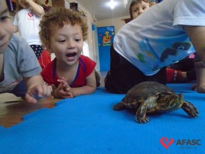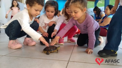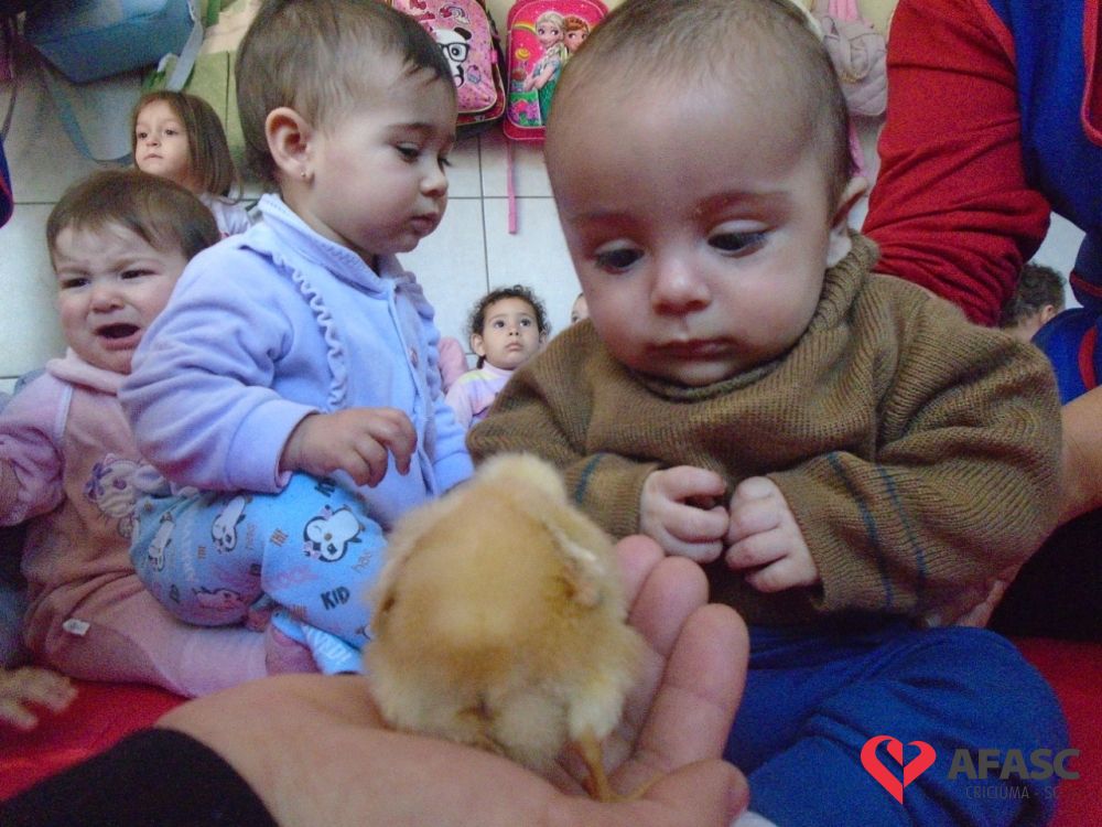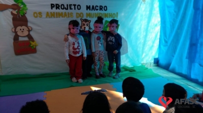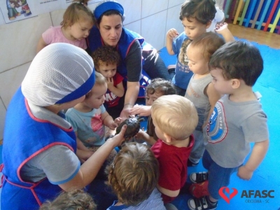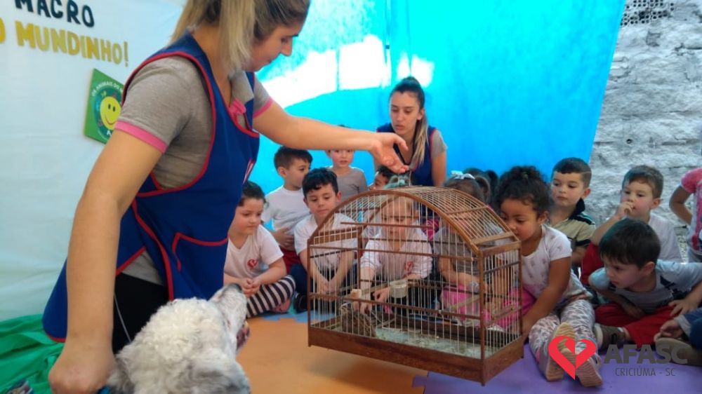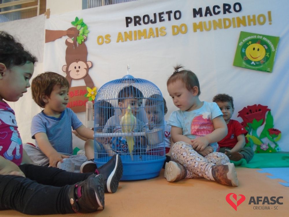 Oportunizar o contato com os animais, bem como estimular a fantasia, imaginação e a afetividade. Esses são alguns dos objetivos do Projeto Macro “Os animais do Mundinho”, que esta sendo desenvolvido pelas profissionais do CEI Afasc Irmã Emília. Atividades tem permitido que as crianças desenvolvam um sentimento positivo em relação aos animais, bem como pela natureza.