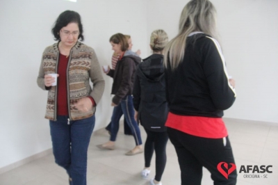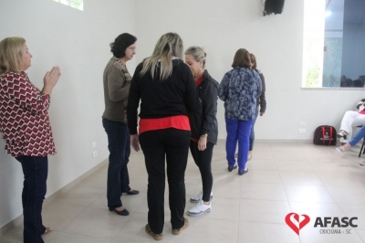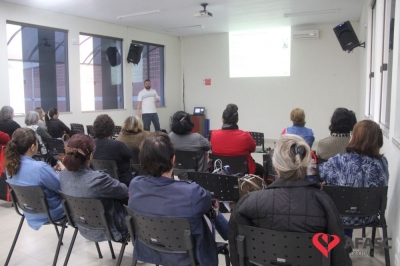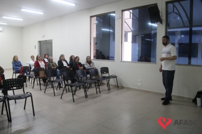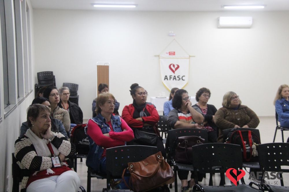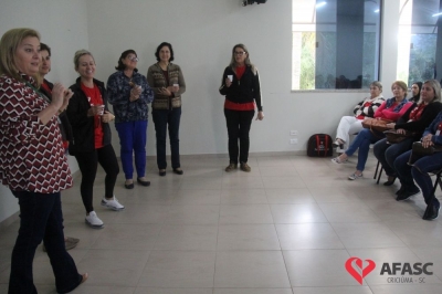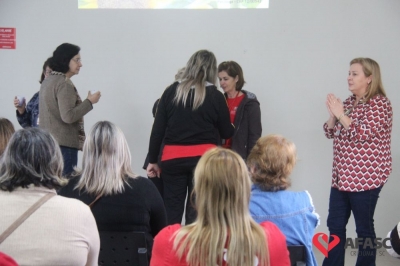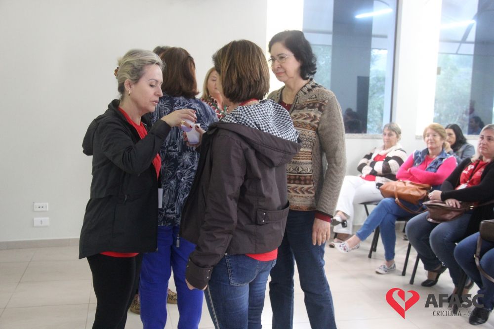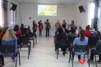 A busca para prestar um melhor atendimento para participantes dos Clubes de Mães e Grupos de Idosos da Associação Feminina de Assistência Social de Criciúma (Afasc) completa ao seu terceiro dia. Nesta quarta-feira (24), as monitoras participaram de palestra Motivacional, com o representante da La Vita Farmácia de Manipulação, Julio Cesar Napoli e dialogo sobre Prevenção ao Suicídio com as profissionais do Núcleo de Prevenção a Violação e Promoção da Saúde (Nuprevips), Silvana Nagel Hulse e Andreia Vieira da Silva.