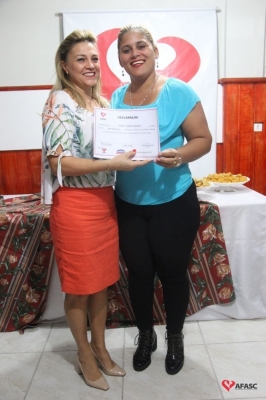 O evento foi realizado na sede da Afasc Solidária e contou com a participação do diretor executivo da entidade, Adriano Boaroli, da vice-dama do município, Robinalva Ferreira, da coordenadora técnica da Afasc Solidária, Maria Lauridia da Silva, do proprietário da Mathesch, Mateus Schimitz e da professora que realizou as oficinas, Adenise Fabris, entre outros convidados.