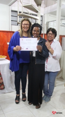 Participantes da oficina de confeitaria da Afasc Solidária e Mathesch recebem declarações de conclusão de curso