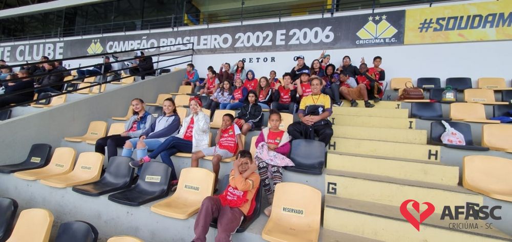 Um passeio muito agradável, de integração e lazer foi proporcionado para os participantes do Serviço de Convivência e Fortalecimento de Vínculos (SCFV) do Centro de Referência de Assistência Social (CRAS) Tereza Cristina. Crianças e adolescentes tiveram a oportunidade de conhecer o estádio Heriberto Hulse, e acompanhar a final da Copa Sub 17, entre Criciúma e Internacional. Crianças e adolescentes foram acompanhados pela orientadora social, Simone Feltrin, pelo facilitador social Carleno Canuto e o coordenador do CRAS, Rodrigo Sakae, que viabilizou a visita.