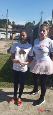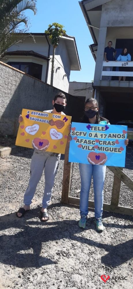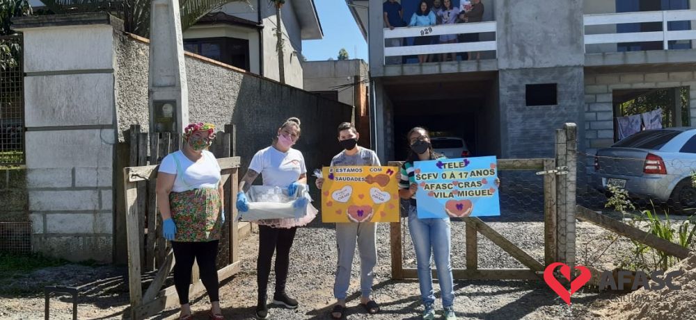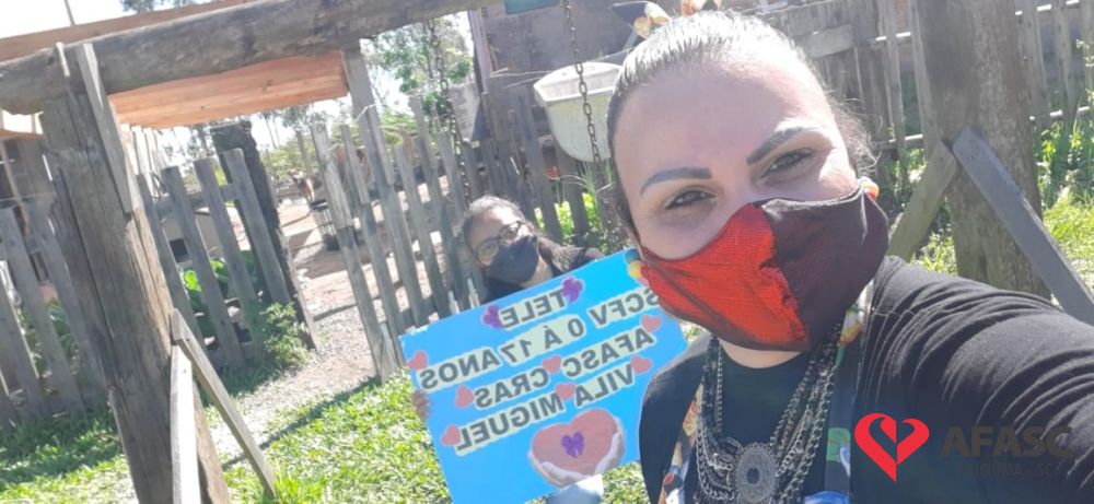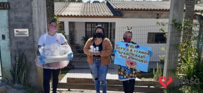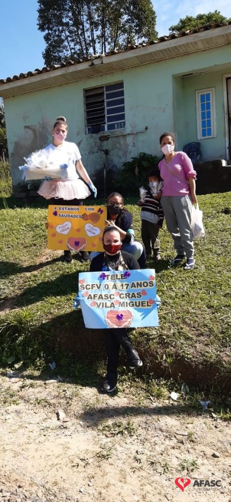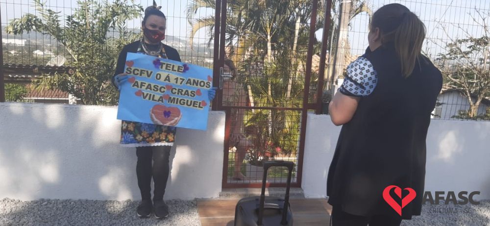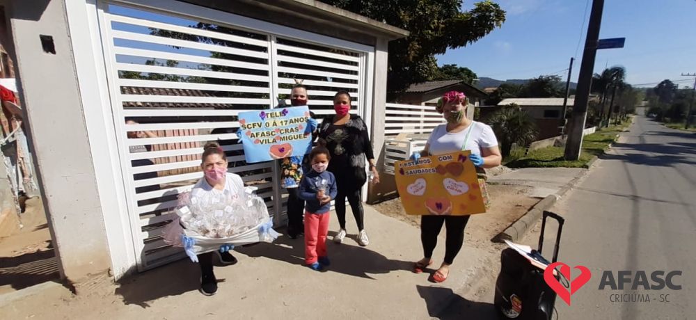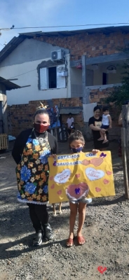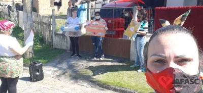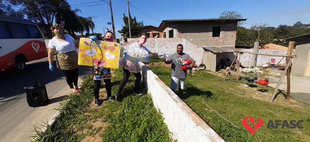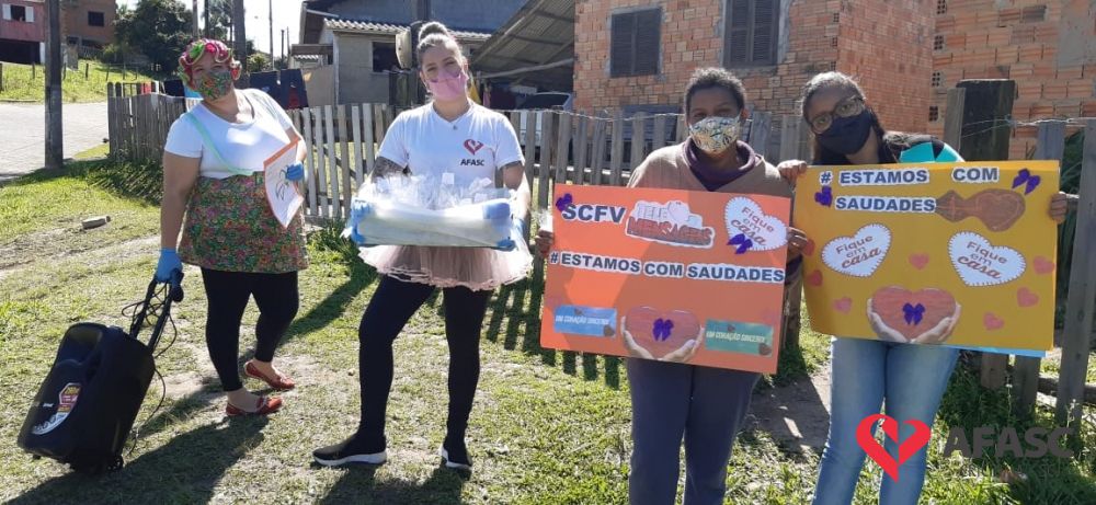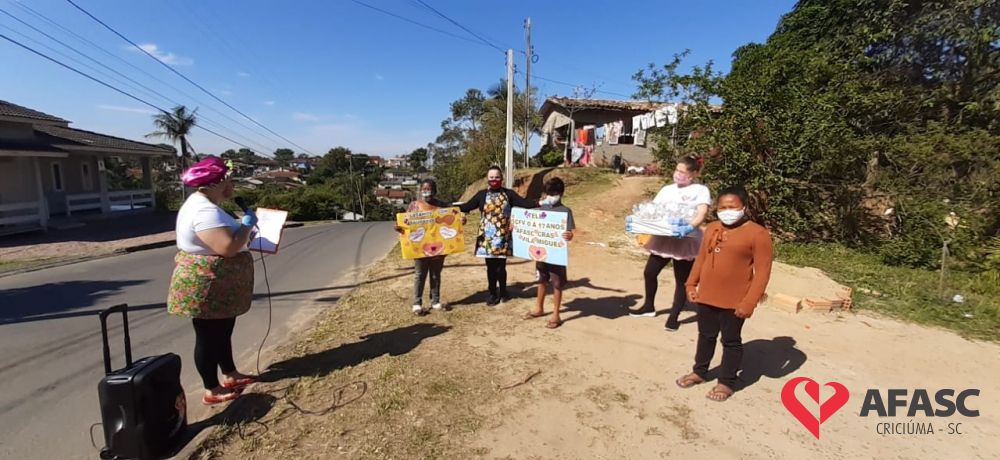 Devido a pandemia do Novo Coronavírus, a rotina de atividades realizadas pelos Serviços de Convivência de zero a 17 anos da Associação Feminina de Assistência Social de Criciúma (Afasc), está modificada. Pensando em levar encanto, doçura e animação, até as casas das crianças e adolescentes que participam do serviço no espaço Vila Miguel, a equipe, acompanhada das bonecas Moranguinho (Aline Corrêa) e a bailarina Benice (Joana Serafim), visitaram os participantes nessa quarta-feira (23), com a atividade “Telemensagens”. A ação faz parte do projeto “Me conta da tua janela”, que está sob a orientação da coordenadora Maria Lauridia da Silva.