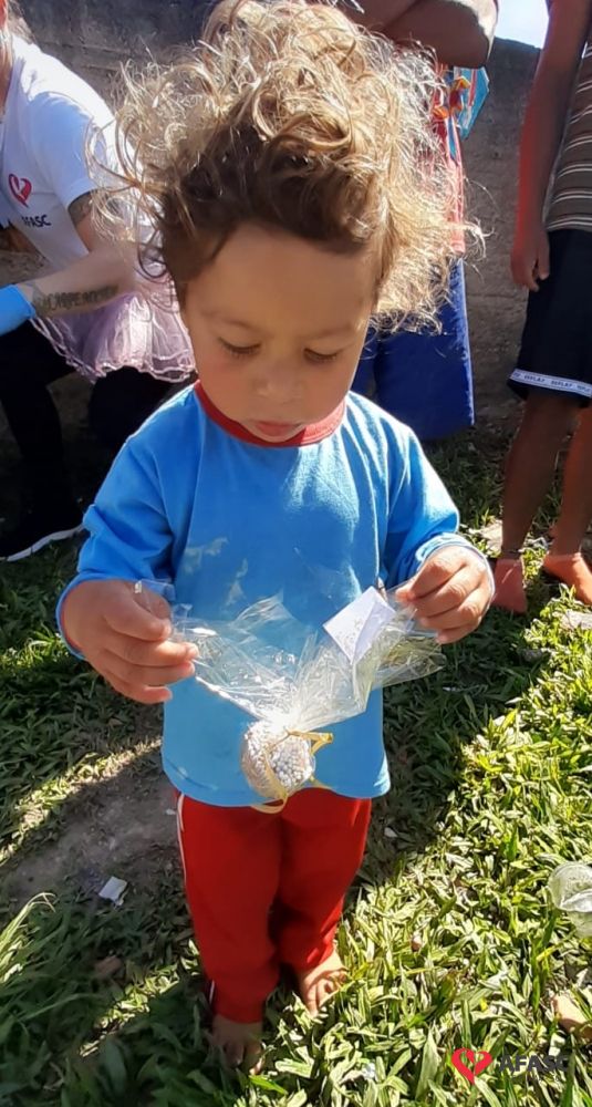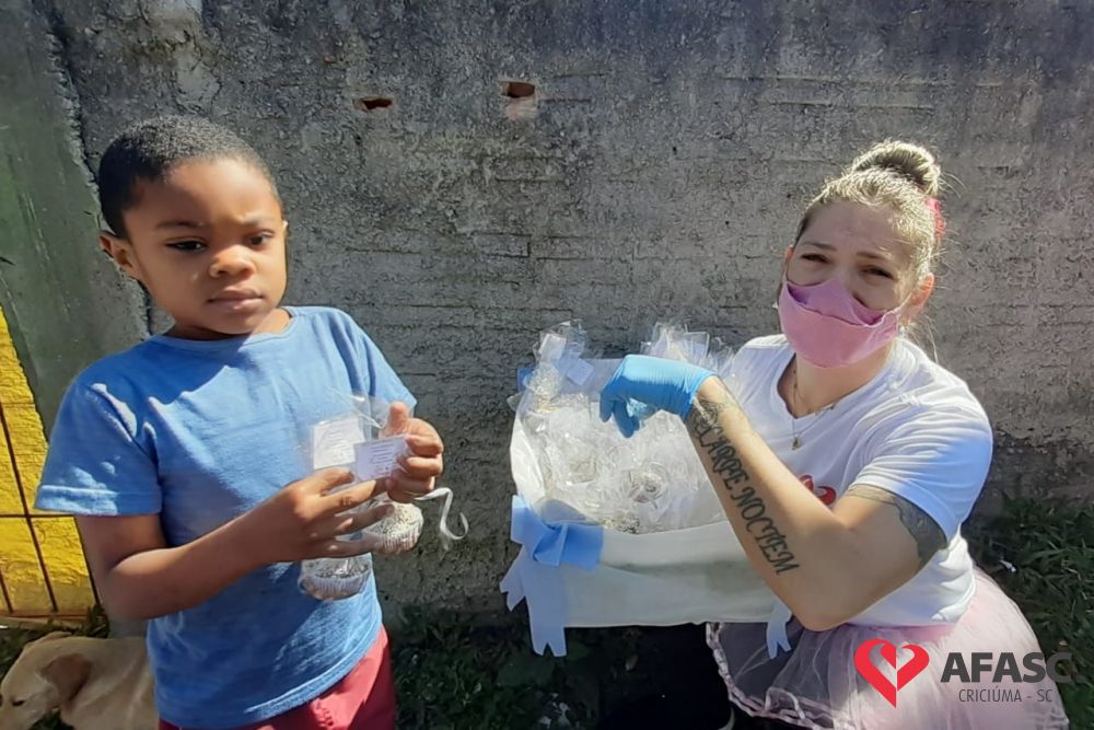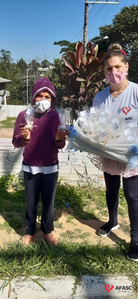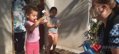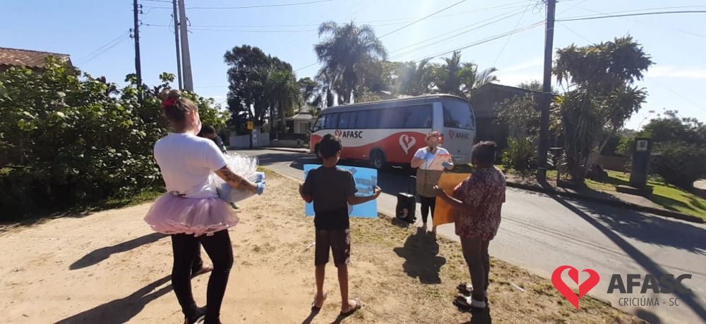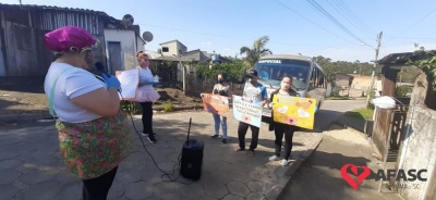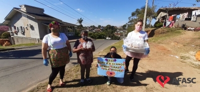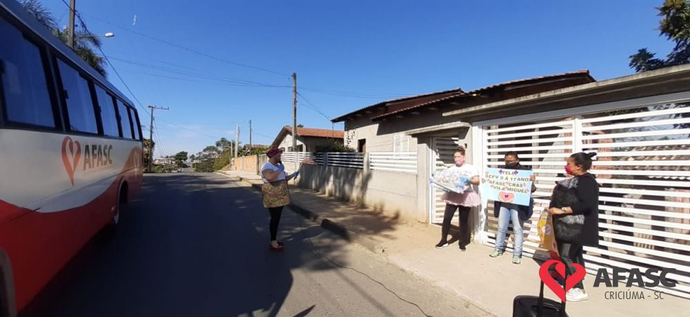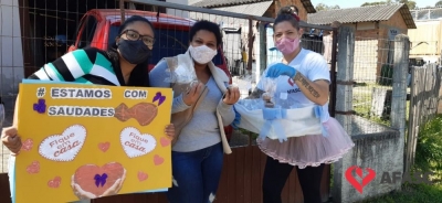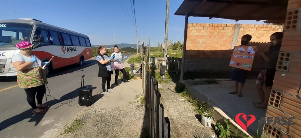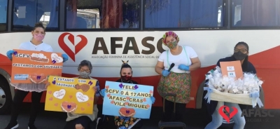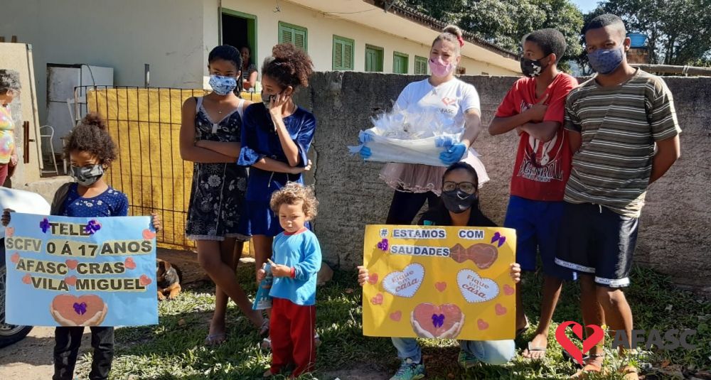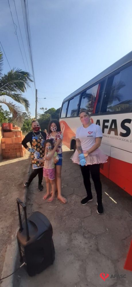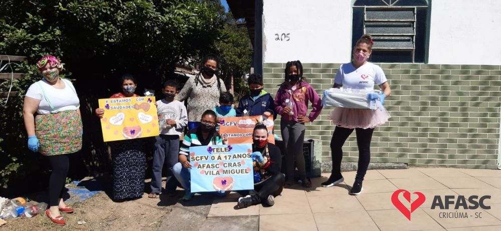 Devido a pandemia do Novo Coronavírus, a rotina de atividades realizadas pelos Serviços de Convivência de zero a 17 anos da Associação Feminina de Assistência Social de Criciúma (Afasc), está modificada. Pensando em levar encanto, doçura e animação, até as casas das crianças e adolescentes que participam do serviço no espaço Vila Miguel, a equipe, acompanhada das bonecas Moranguinho (Aline Corrêa) e a bailarina Benice (Joana Serafim), visitaram os participantes nessa quarta-feira (23), com a atividade “Telemensagens”. A ação faz parte do projeto “Me conta da tua janela”, que está sob a orientação da coordenadora Maria Lauridia da Silva.