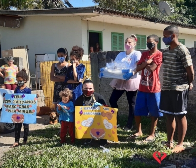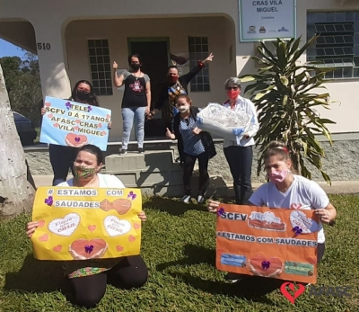 Segundo a orientadora social do Serviço de Convivência Vila Miguel, Liliane Macan, foi mais um encontro emocionante que a equipe viveu ao lado das crianças e adolescentes, além dos idosos atendidos por meio do grupo “Arte de criar” da facilitadora, Marli da Silva. “Visitar a casa das 57 crianças e adolescentes, e os 30 idosos, foi uma surpresa para os participantes. Realizamos esta homenagem, e ressaltamos a cada um dos participantes o quanto estamos com saudades e desejamos que essa pandemia passe logo para que possamos estar juntos novamente. Queremos que os participantes percebam que somos presentes na vida deles, ao mesmo tempo em que nessa oportunidade, podemos identificar e realizar encaminhamentos para as famílias que necessitam”.