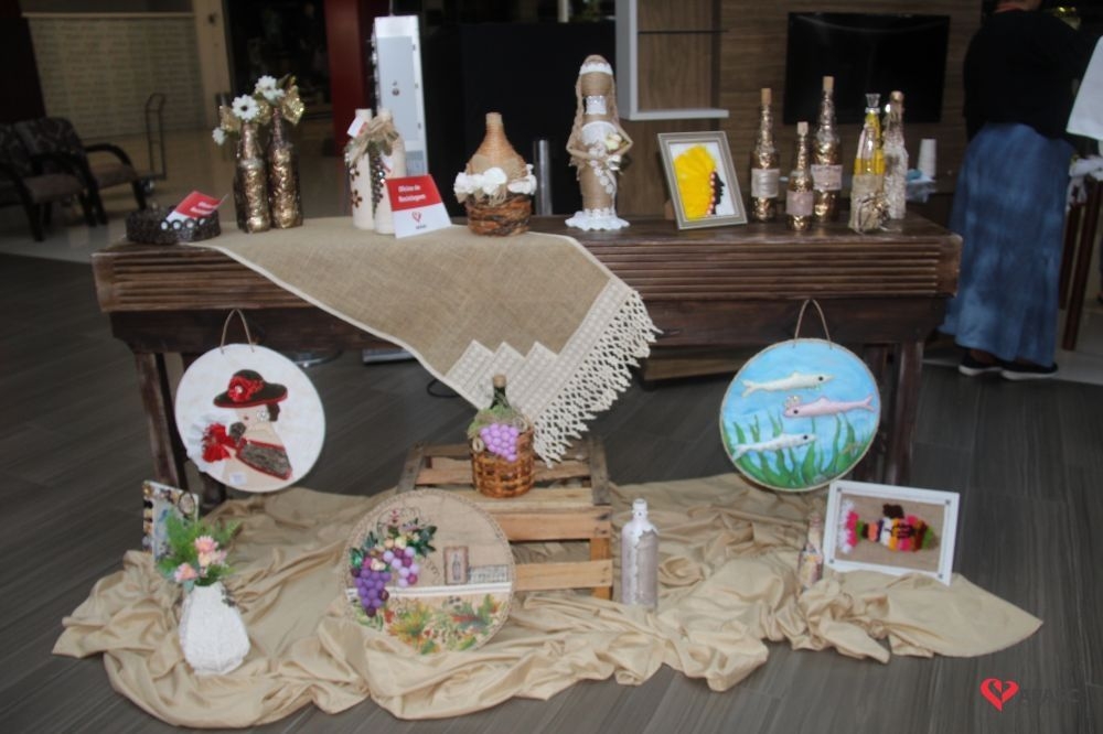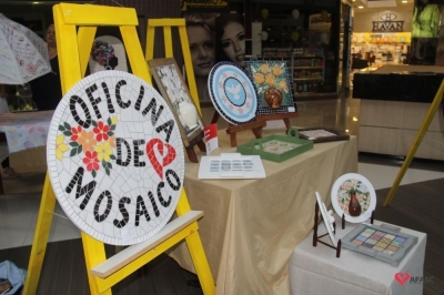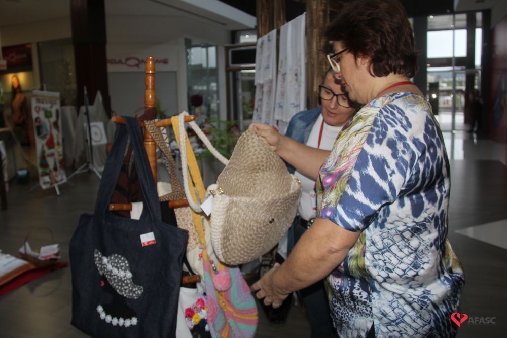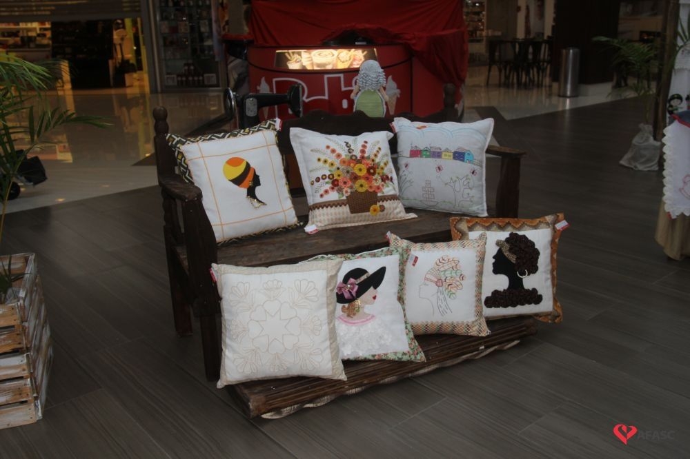Toalhas, almofadas, peças de decoração, entre outros objetos dos Clubes de Mães e oficinas de pintura em tecido, reciclagem e mosaico da Associação Feminina de Assistência Social de Criciúma (Afasc) estão em exposição na “Expo Raízes”, no Criciúma Shopping. A mostra que iniciou nesta segunda-feira (13) e segue até o dia 31 de maio, tem peças que fazem parte do projeto Raízes, que está sendo desenvolvido nos grupos durante os encontros semanais.