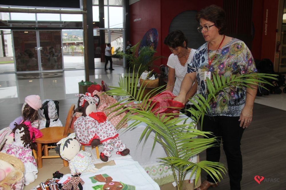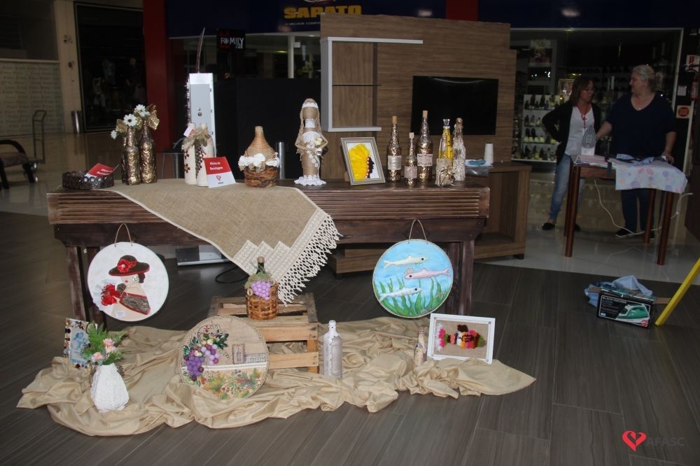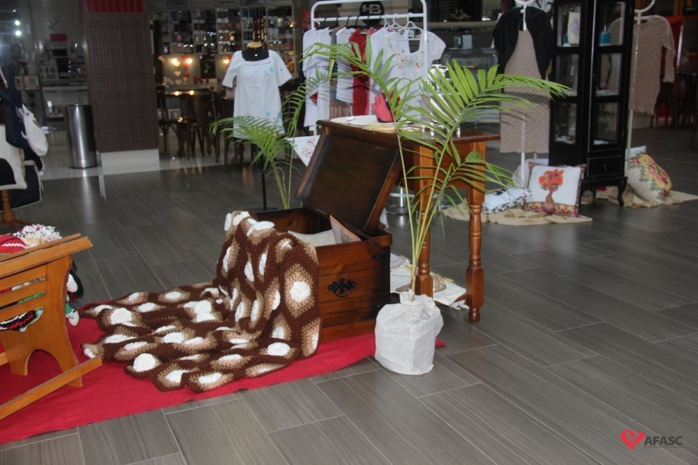 Peças de artesanato dos Clubes de Mães da Afasc estão em exposição no Criciúma Shopping