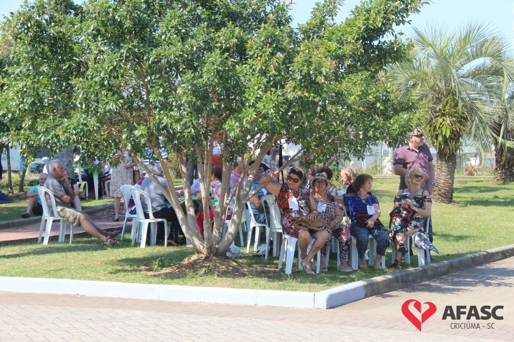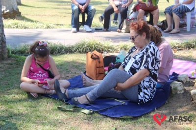 Apresentações artísticas, toalhas espalhadas pelas sombras, passeios de trem, jogos de mesa e conversa boa. Assim foi a tarde desta terça-feira, (1º), para os idosos que participam de atividades da Associação Feminina de Assistência Social de Criciúma (Afasc) no Centro de Convivência da Terceira Idade (CCTI) e nos Grupos de Idosos, no Piquenique no Parque Nações. O evento contou com a participação do diretor executivo da Afasc, Adriano Boaroli, da primeira-dama, Adriana Salvaro, da vice-dama, Robinalva Ferreira, da coordenadora dos Grupos de Idosos, Janaina Scaini e do coordenador do CCTI, Daniel Cipriano.