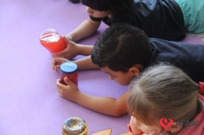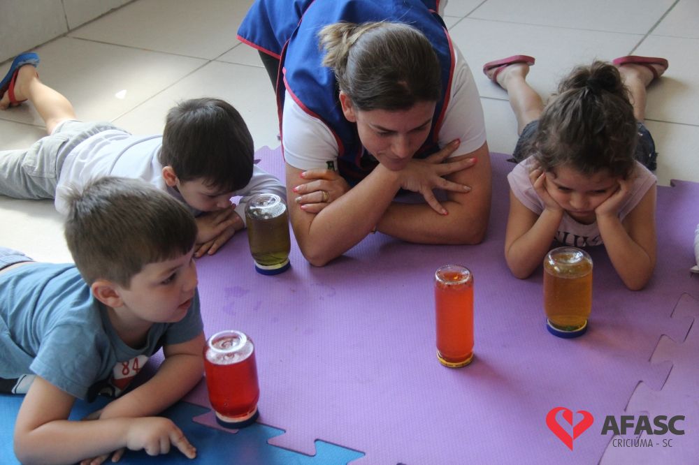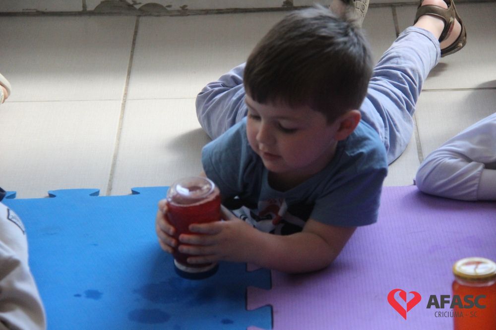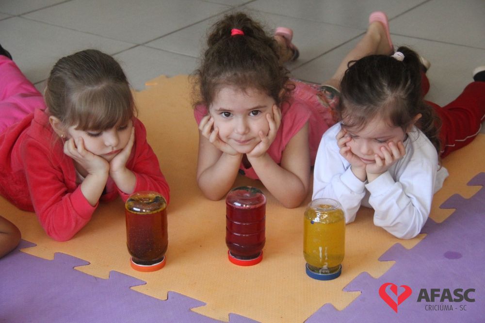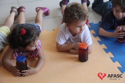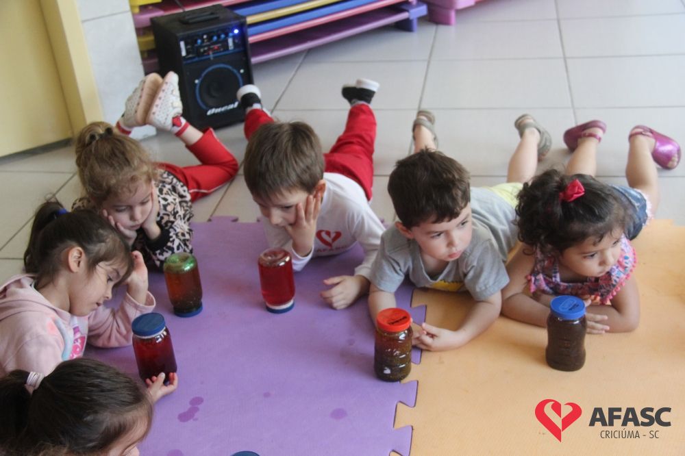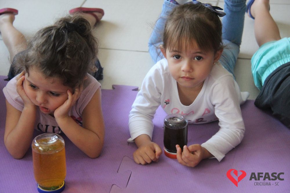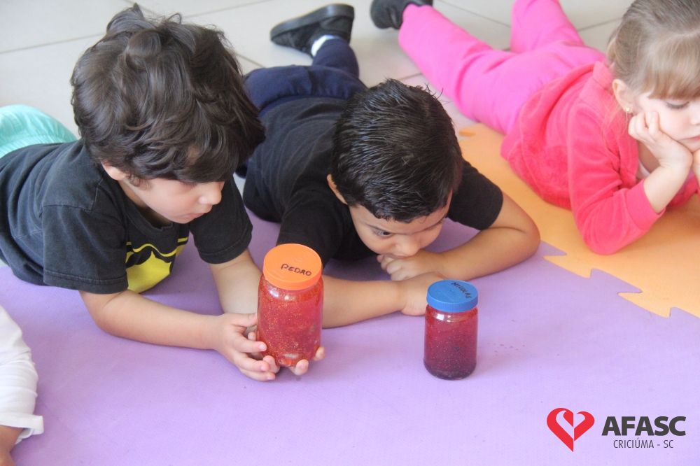 Água colorida e muito brilho. Esses são os principais elementos que estão facilitando que as crianças dos Grupos III e IV do Centro de Educação Infantil (CEI) da Associação Feminina de Assistência Social de Criciúma (Afasc) Moradas da Colina encontrem a calma e paciência durante o processo de largar a chupeta. A atividade “Pote da Calma”, quer foi realizada pelas educadoras Juliana Damasio e Viviane Brachinski, contou com a colaboração dos pais, que ajudaram na confecção do material.