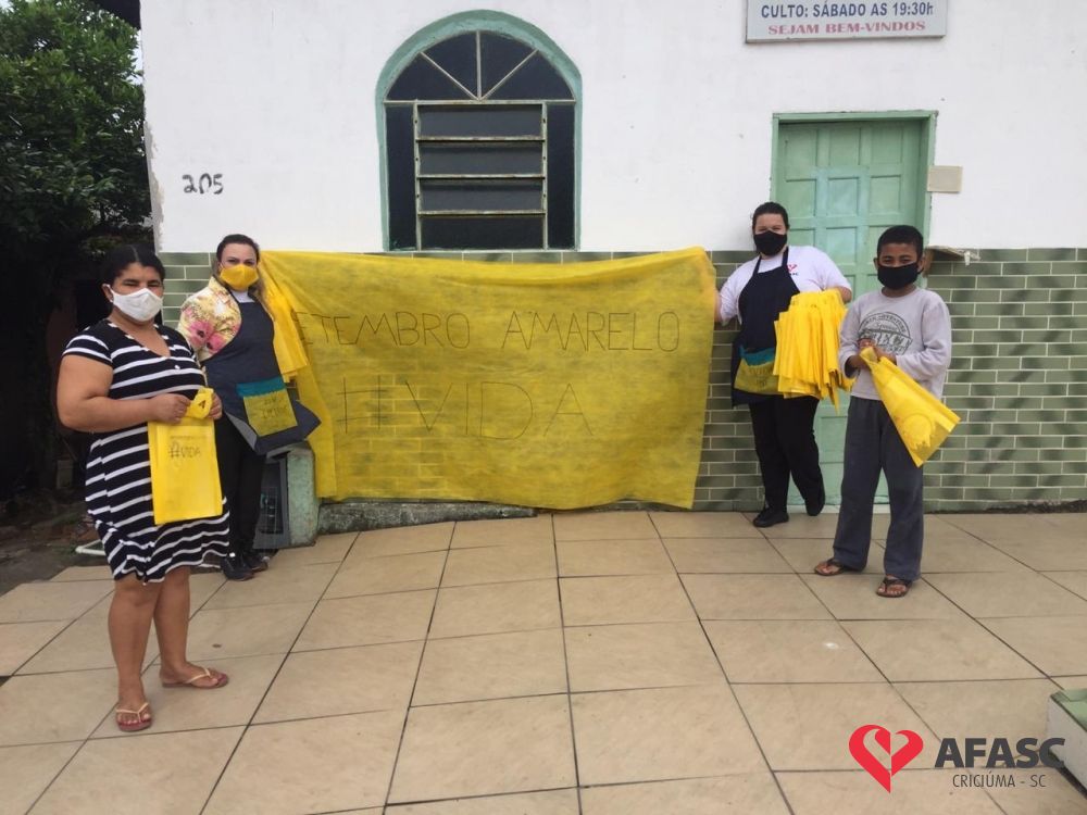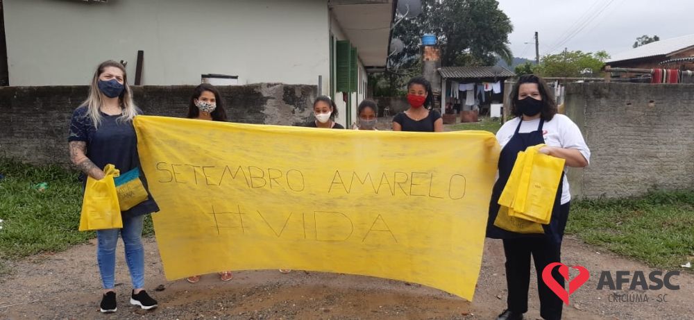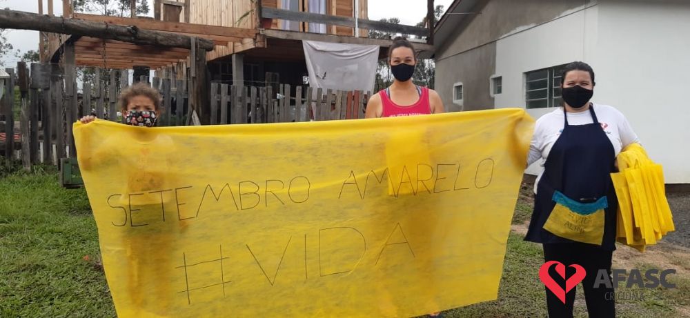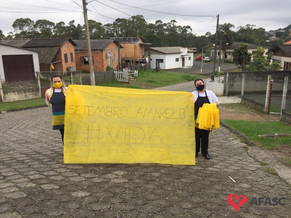 Com o objetivo de orientar as pessoas sobre ações de prevenção ao suicídio, profissionais do Serviço de Convivência da Associação Feminina de Assistência Social de Criciúma (Afasc) realizaram diversas atividades em alusão a campanha Setembro Amarelo. As atividades foram realizadas através de vídeos e passeata com entrega de orientações nas proximidades dos espaços.