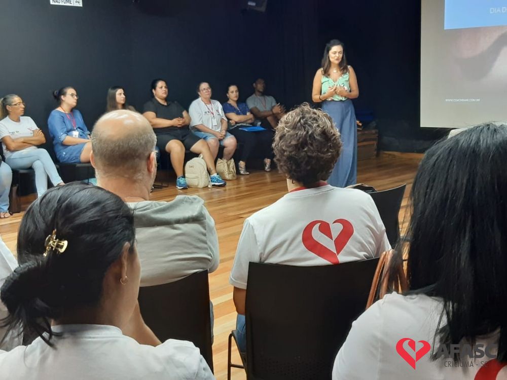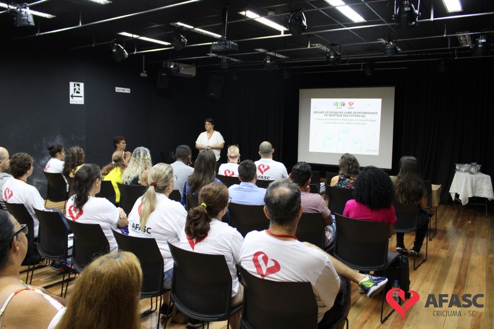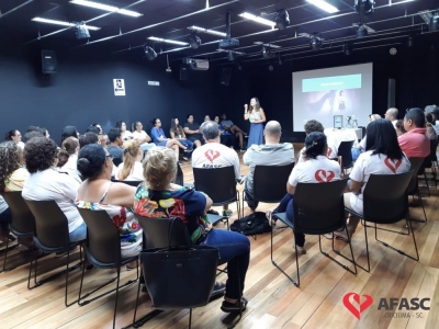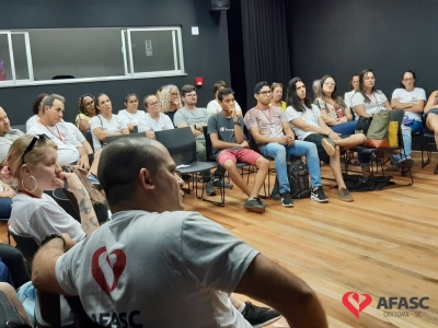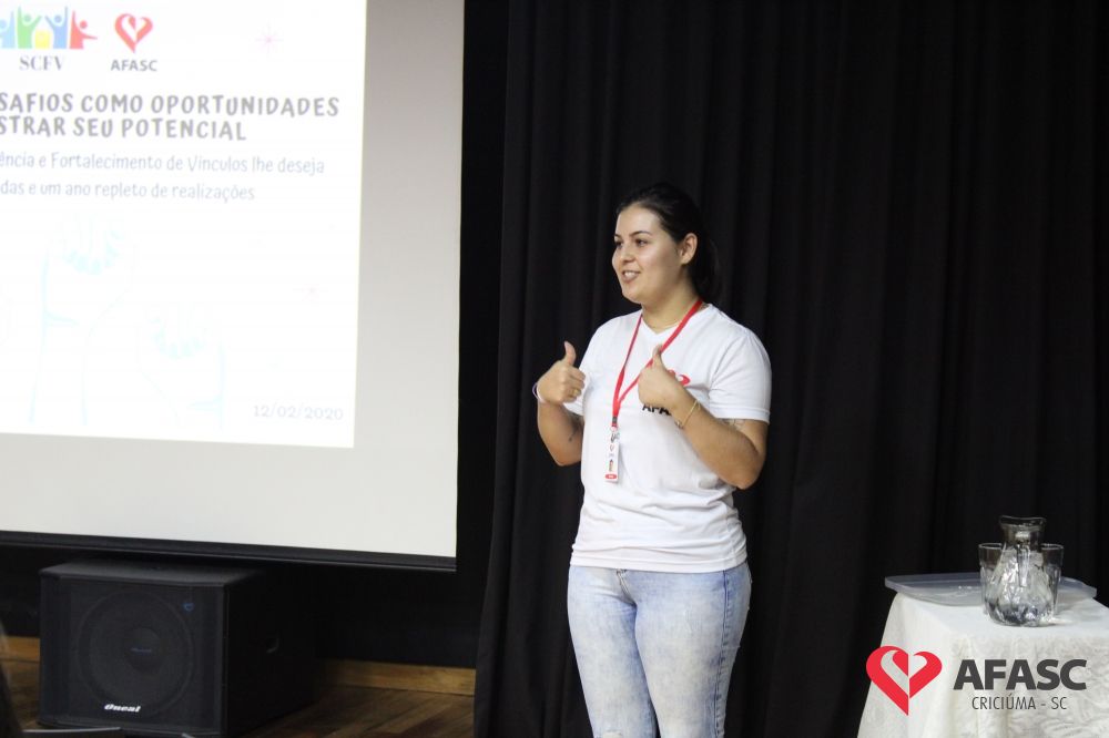Enquanto a equipe de apoio passou por treinamento de “Boas práticas de manipulação” com a nutricionista da Afasc, Luzane Florencio, facilitadores e orientadores sociais se reuniram para apresentação e estudo do plano de trabalho do SCFV de 2020, que traz como tema central “Trilhando os caminhos da paz IV”, além de participar de uma palestra com a coaching e analista comportamental, Daniela Martins Felício, que trouxe o título “O dia do chega”.