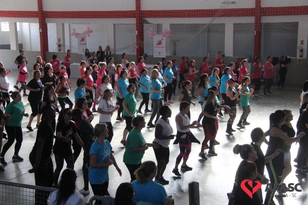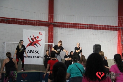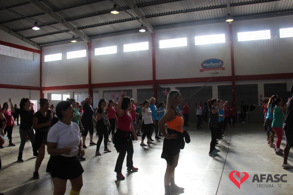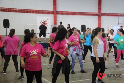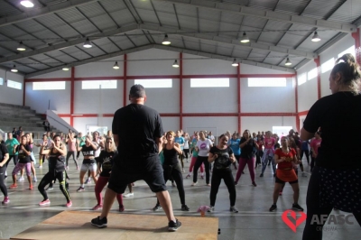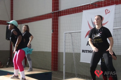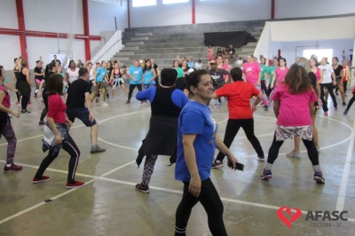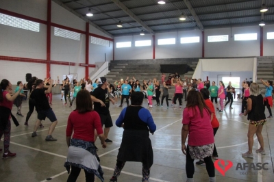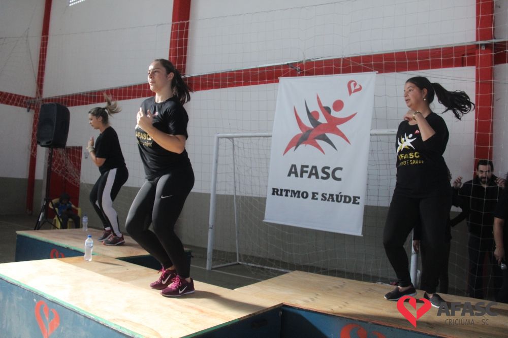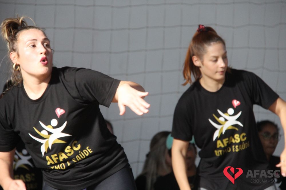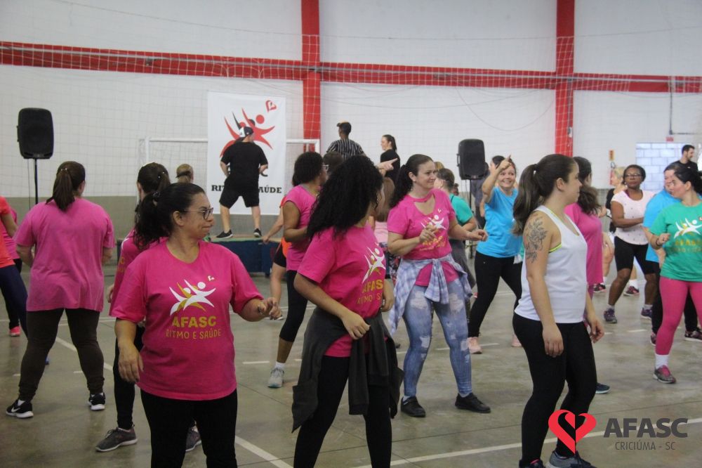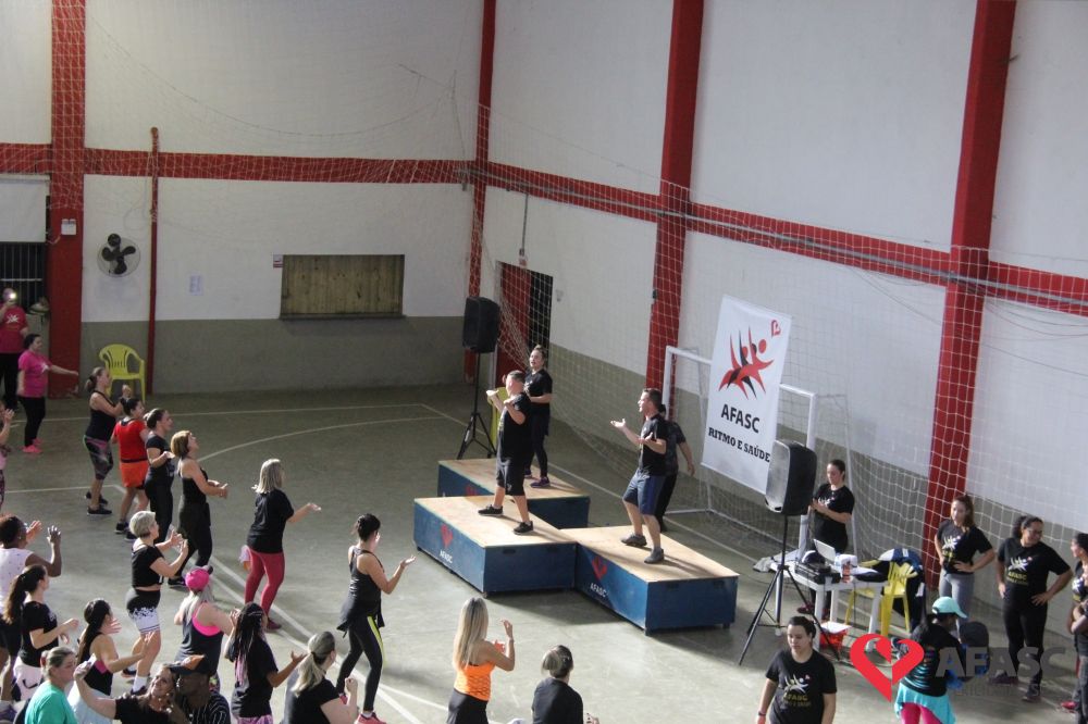 Coreografias motivantes e simples, misturando vários ritmos como axé, funk, sertanejo, forró, danças latinas, entre outros. Assim foi a tarde do último sábado (24), quando a equipe do Programa da Associação Feminina de Assistência Social de Criciúma (Afasc) Ritmo e Saúde, realizou o primeiro encontro regional de 2019. Nesta edição, que foi realizada no ginásio do bairro Santo Antonio, centenas de pessoas que fazem parte da Região Centro participaram do evento.