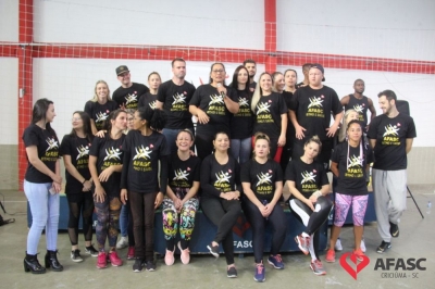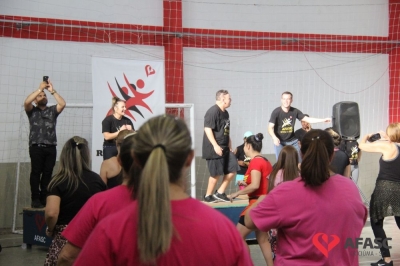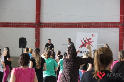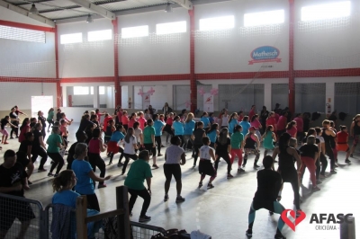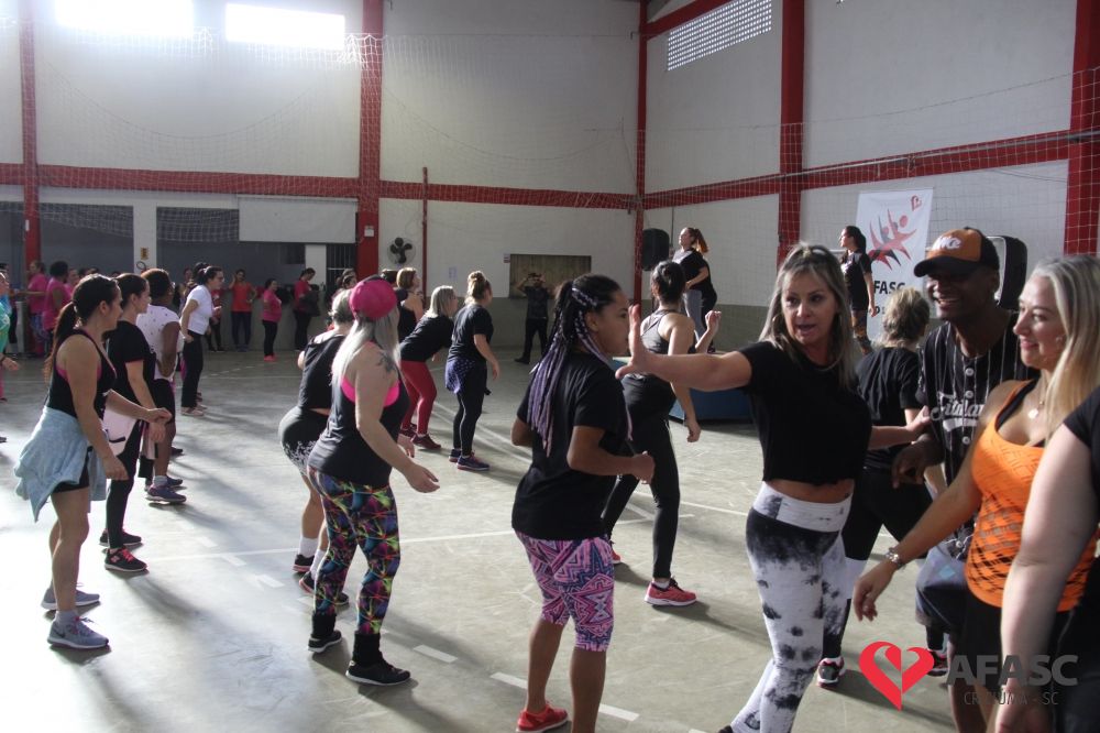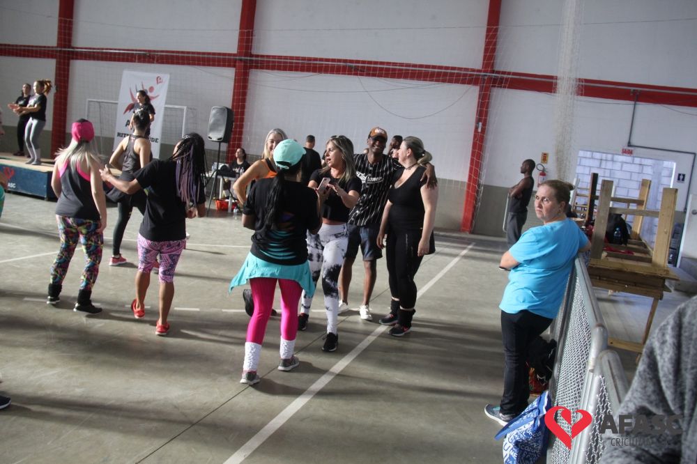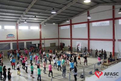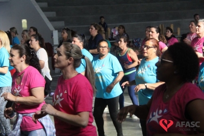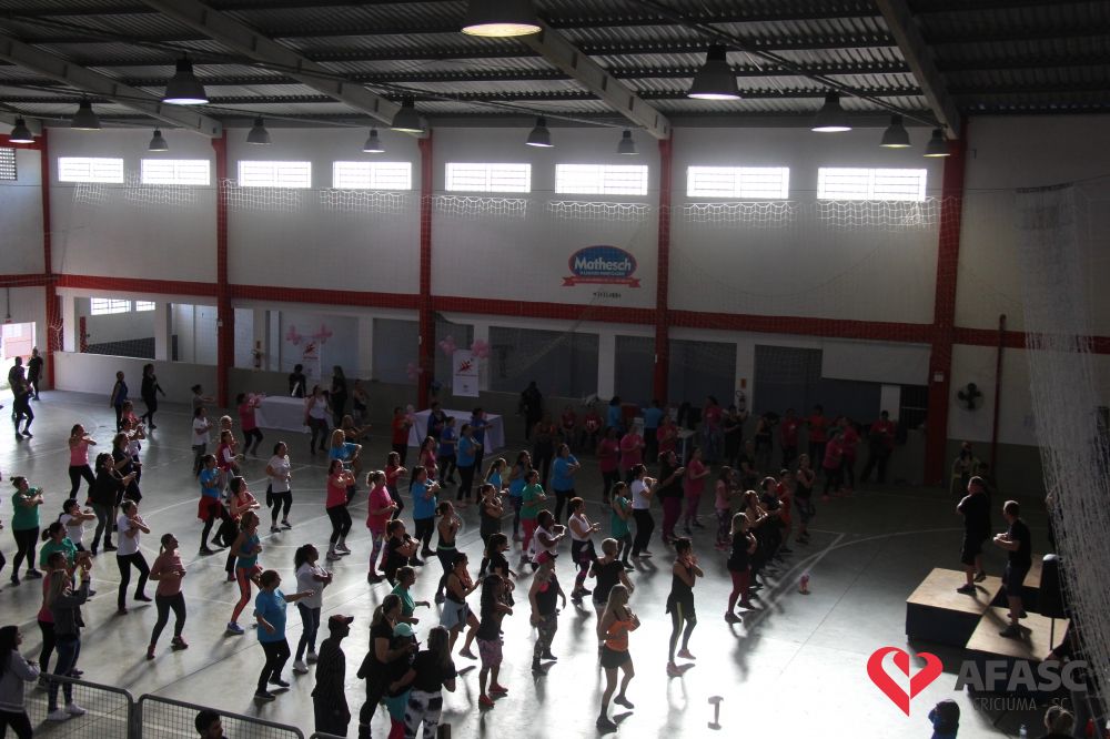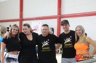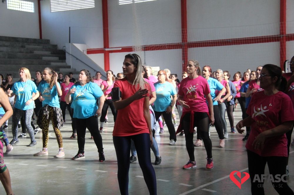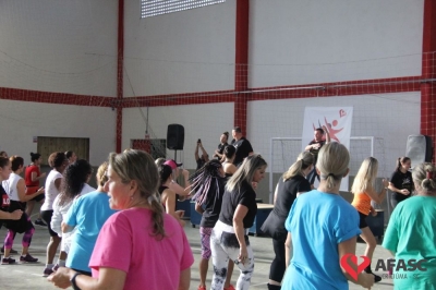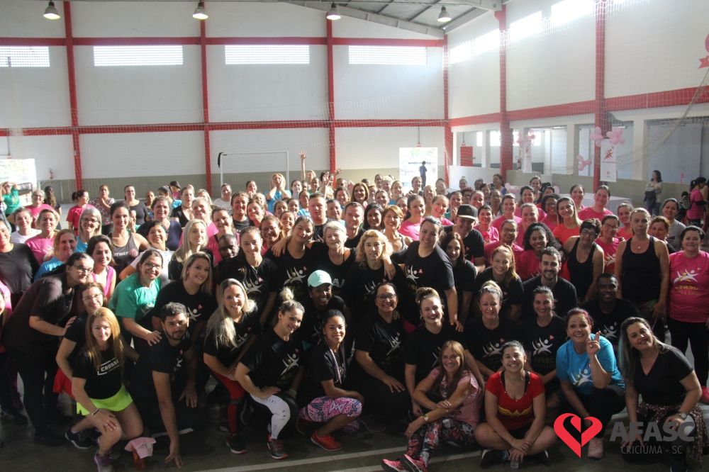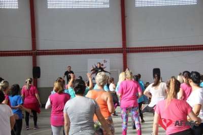 Coreografias motivantes e simples, misturando vários ritmos como axé, funk, sertanejo, forró, danças latinas, entre outros. Assim foi a tarde do último sábado (24), quando a equipe do Programa da Associação Feminina de Assistência Social de Criciúma (Afasc) Ritmo e Saúde, realizou o primeiro encontro regional de 2019. Nesta edição, que foi realizada no ginásio do bairro Santo Antonio, centenas de pessoas que fazem parte da Região Centro participaram do evento.
