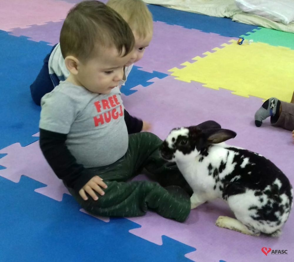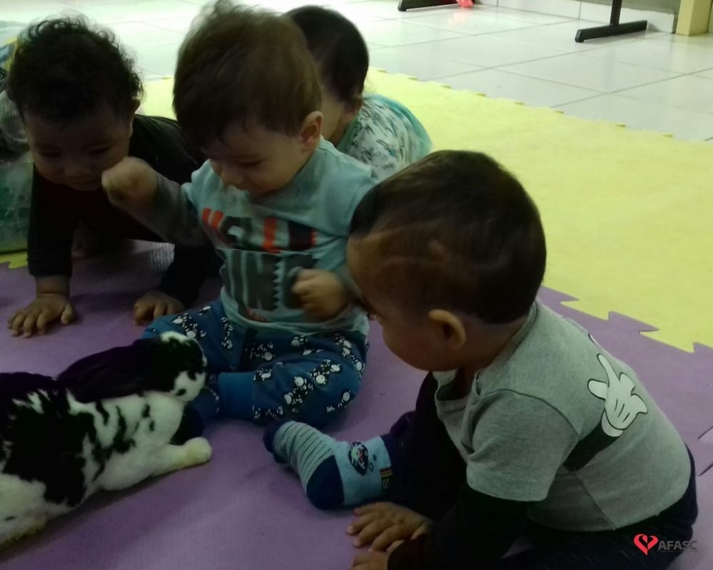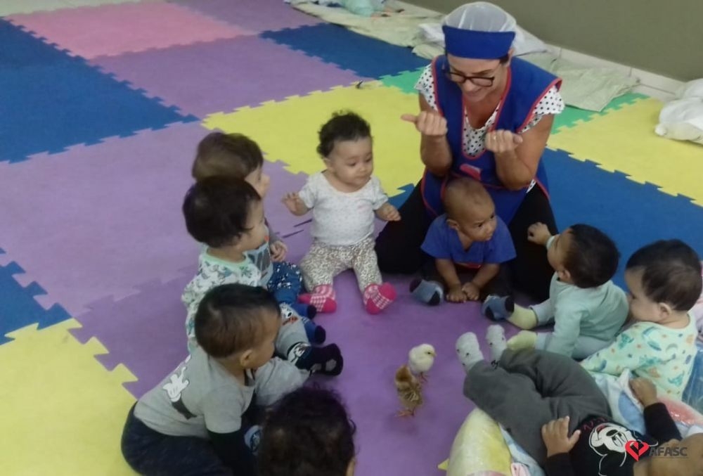 Cachorro, pintinho, peixinho e coelhinho. Esses animaizinhos participaram da aula do Grupo 1 do Centro de Educação Infantil (CEI) da Associação Feminina de Assistência Social de Criciúma (Afasc) Nova Esperança, e possibilitaram que as professoras Caroline Dutra e Jucinéia Colombo mostrassem para os bebês como são os animais domésticos. A atividade faz parte do projeto “Conhecendo os animais”, que tem despertado o interesse dos pequenos.