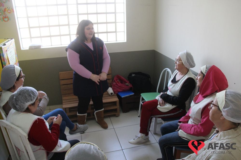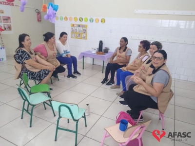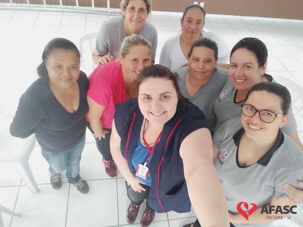 Momentos de autoconhecimento, resgatando a espontaneidade no papel de ser mulher. Esse foi o principal objetivo que o Departamento de Educação Infantil (DEI) da Associação Feminina de Assistência Social de Criciúma (Afasc) levou para as equipes de apoio dos 32 Centros de Educação Infantil (CEI) da entidade ao realizar o projeto “Cuidando de quem educa II – Emponderamento das mulheres”, realizado pela psicóloga do setor, Suelen Cipriani.