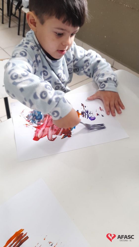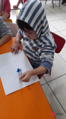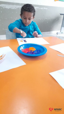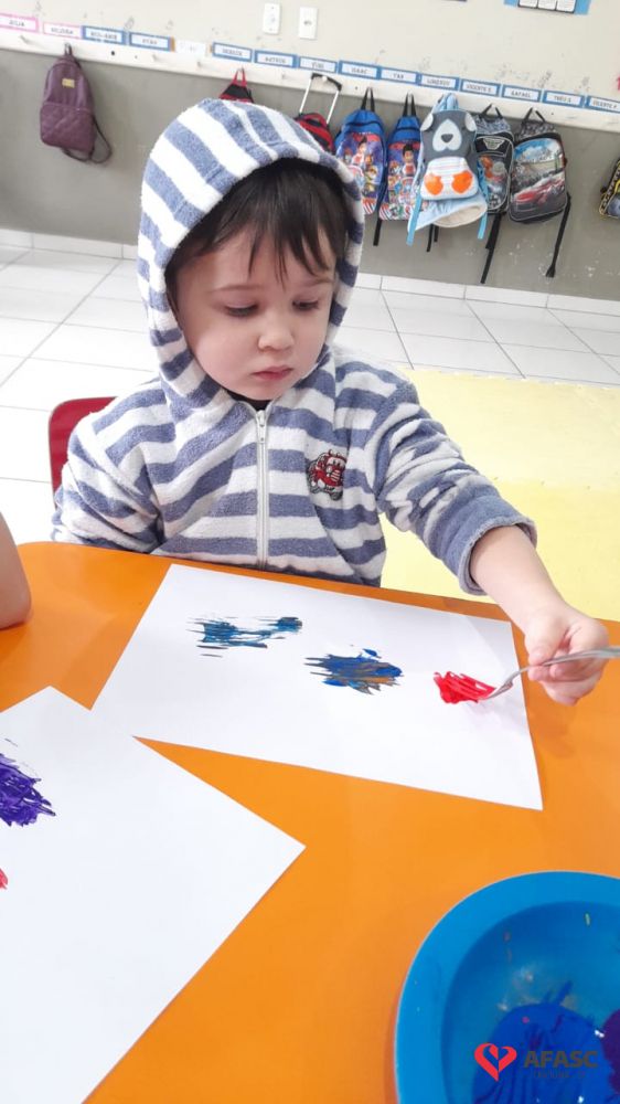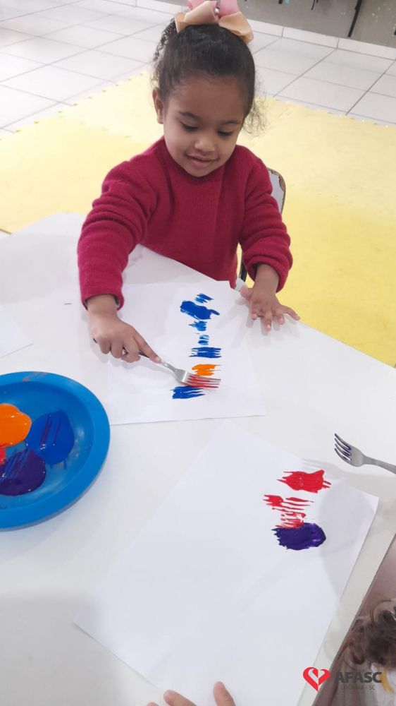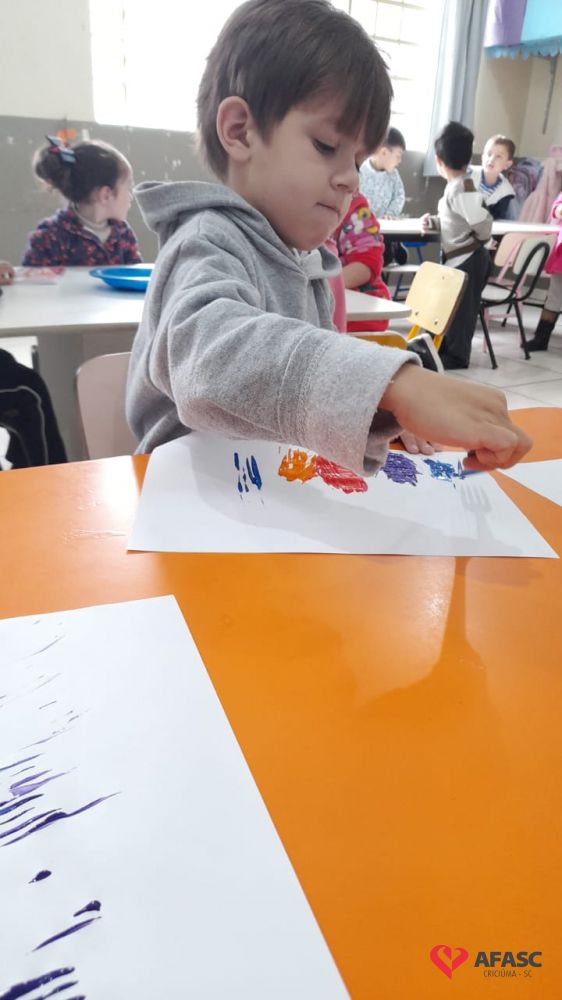 As crianças do Grupo 4A, por meio da proposta, desenvolveram a atividade “Do mundo da imaginação para a mistura de tintas e descoberta de novas cores”. Toda a atividade foi acompanhada pela professora Tais Goulart que tem aprimorado, junto aos pequenos, várias técnicas. “As cores estão presentes na vida das crianças, por isso resolvi fazer com elas atividades nas quais possam conhecer mais sobre as cores e suas transformações. Passamos pelas cores primárias e secundárias através do livro de Ruth Rocha: ‘Bom dia, Todas as Cores!’ por meio do qual ficou mais fácil explicar para as crianças as cores e as suas junções”, comenta.