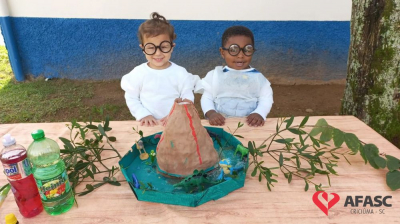O projeto “Pequenos Cientistas, Grandes Experiências” do CEI Afasc Santo Antonio tem despertado nas crianças o espírito investigativo e a curiosidade pela transformação que ocorre entre misturas dos elementos. Para levar os pequenos do Grupo 3 B a explorar novas vivências as professoras Michele Alano e Fernanda da Silva desenvolveram a atividade vulcão, onde puderam entender como são suas camadas e como funciona o processo de erupção.