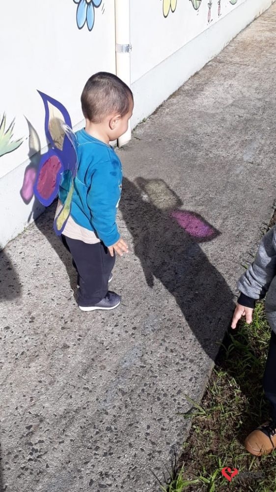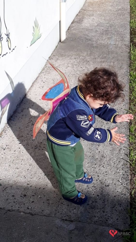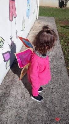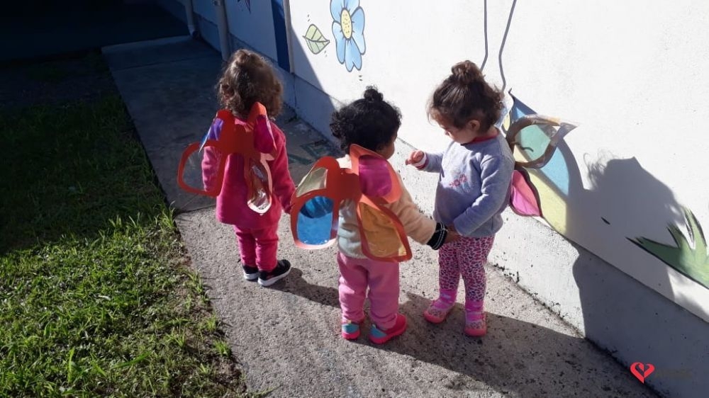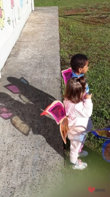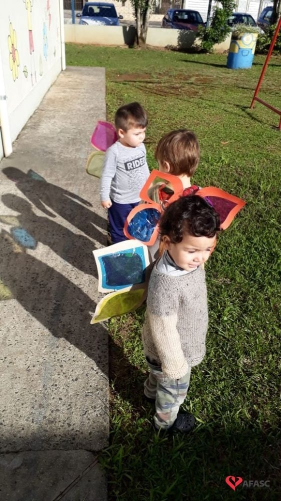Dentre as atividades, as educadoras propuseram a “Borboleta das cores”, onde confeccionaram asas coloridas para cada uma das crianças da turma.