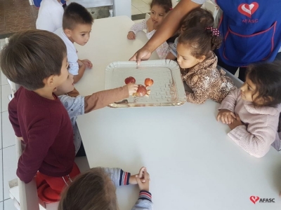 Valorizar a boa alimentação despertando na criança o interesse por alimentos saudáveis e de alto valor nutritivo proporcionando saúde de forma lúdica, atraente e educativa. Esse foi o intuito do Centro de Educação Infantil (CEI) da Associação Feminina de Assistência Social de Criciúma (Afasc) Benevenuto Guidi, ao desenvolver durante o primeiro semestre o Projeto Macro “Alimentação Saudável: do lúdico ao prato”. Durante o desenvolvimento das atividades, as crianças foram incentivadas a ter bons hábitos alimentares, a experimentarem novos alimentos e evitarem desperdício.