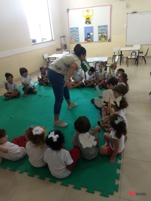 Desta vez, a professora proporcionou momentos de interação e alegria para as crianças do Centros de Educação Infantil (CEI) da Associação Feminina de Assistência Social de Criciúma (Afasc) Deputado Ulysses Guimarães, no bairro Operária Nova e Pequeno Polegar, No Pio Corrêa. No primeiro as crianças participaram da dramatização “O Rato”, já no segundo foi “Jacaré foi passear lá na lagoa”.