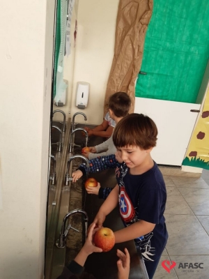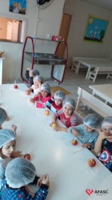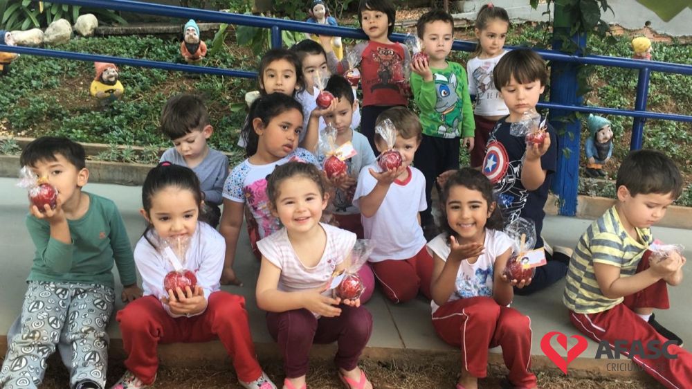 Para fazer as crianças mergulharem nesse mundo mágico, as educadoras trabalharam a história “Branca de Neve e os sete anões”, onde as crianças puderam compreender mais sobre os valores contidos no conto e transformar o feitiço da maça em amor, compartilhando com seus colegas e familiares.