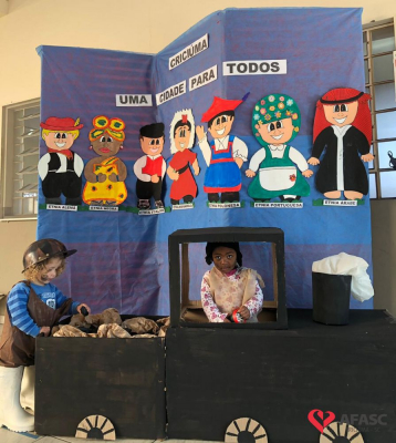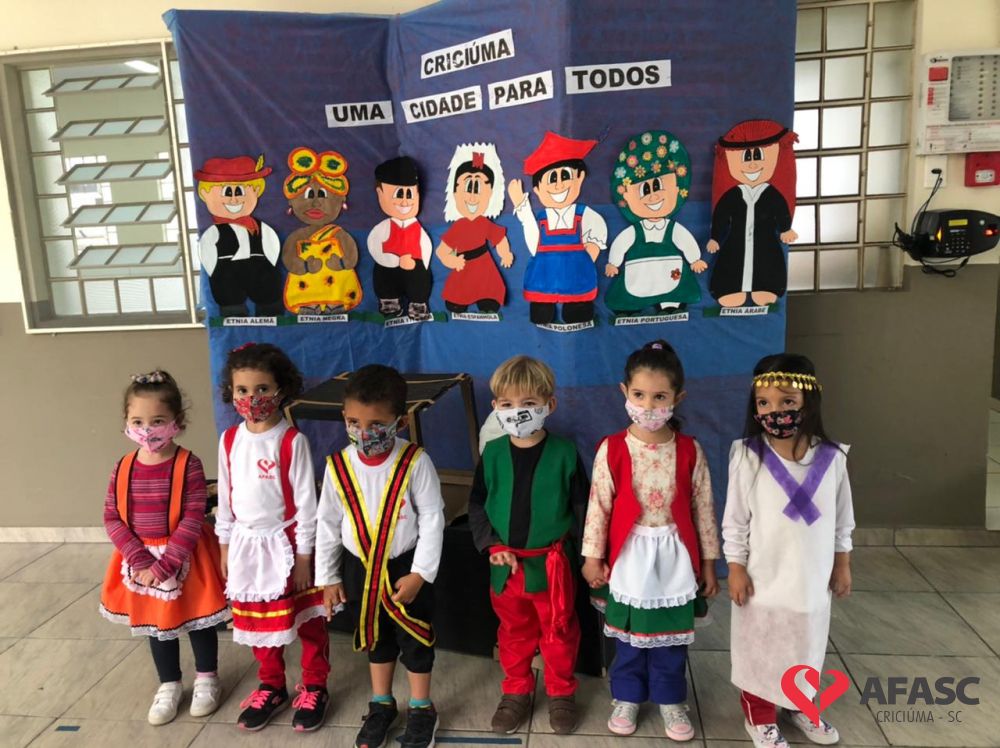 Durante o desenvolvimento do planejamento a equipe da creche oportunizou às crianças situações que as fizeram refletir sobre as diferentes culturas, a diversidade étnico-cultural e vivenciar um pouco da colonização da cidade de Criciúma.