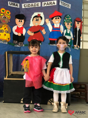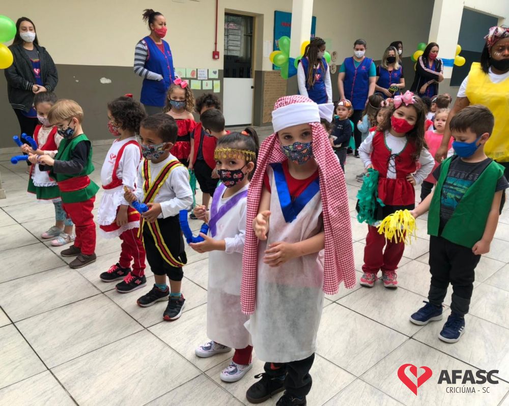 Exposição de objetos antigos, apresentações culturais, dia de beleza e preparo de alimentos típicos foram algumas das atividades desenvolvidas pelas crianças, professoras e pais do CEI Afasc Deputado Ulysses Guimarães durante a realização do projeto macro “Etnias; uma viagem cultural”.