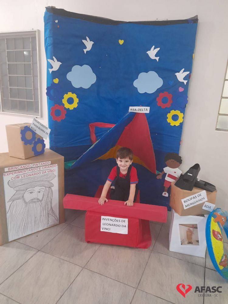 A comunidade escolar do CEI Afasc Deputado Ulysses Guimarães esteve envolvida num lindo projeto durante o primeiro semestre de 2022. Utilizando de muita brincadeira e pinturas, as crianças com ajuda de professores e familiares desenvolveram o projeto “Brincando, pintando, experimentando e criando com Leonardo Da Vinci”. Durante a realização do projeto, os pequenos foram protagonistas de novas descobertas e foram inventores, tendo como base alguns experimentos de Leonardo Da Vinci.