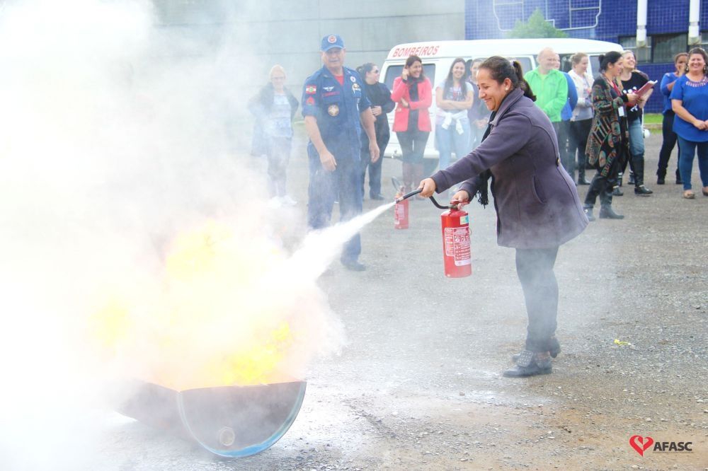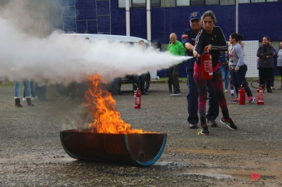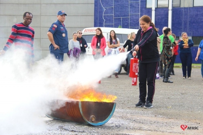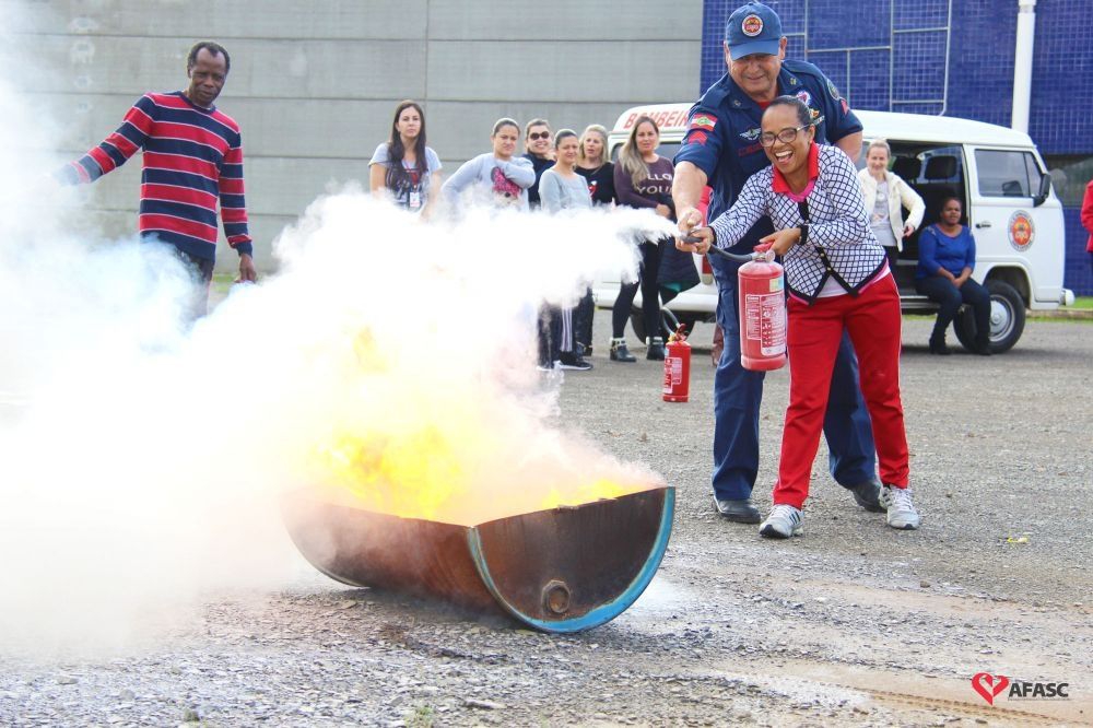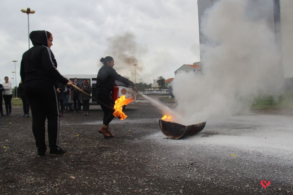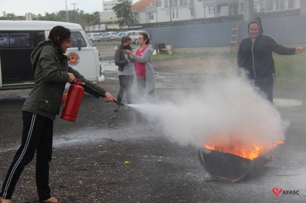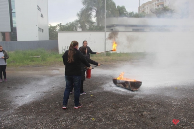 Os profissionais da entidade receberam orientações sobre como realizar os primeiros atendimentos, em caso de emergência, como verificação do nível de consciência, respiração e batimento cardíaco. Em seguida, aprenderam sobre os diferentes tipos de incêndios e quais extintores são indicados para cada situação. Por fim, sob os cuidados do sargento Silveira, colocaram os conhecimentos em prática e apagaram um incêndio controlado.
