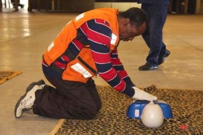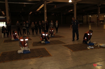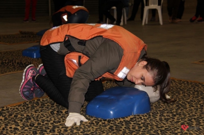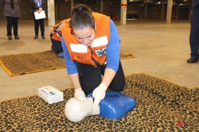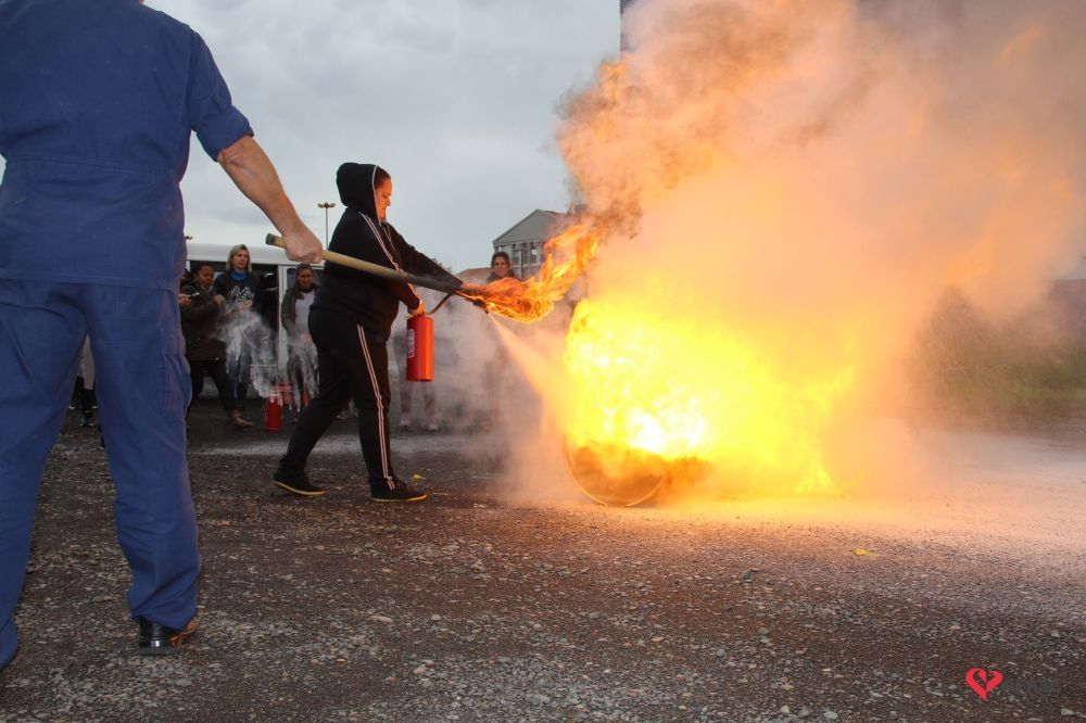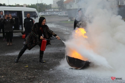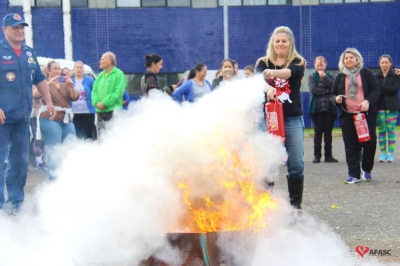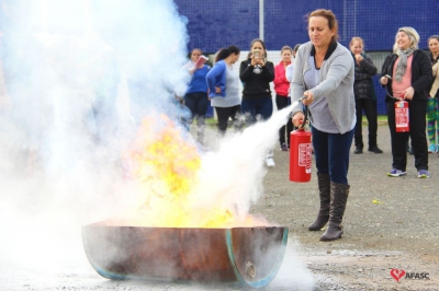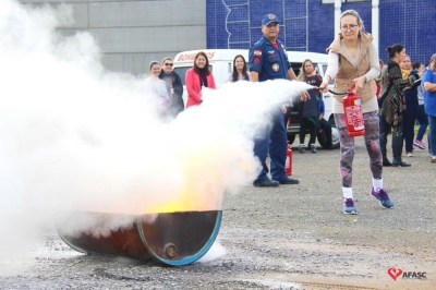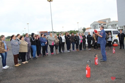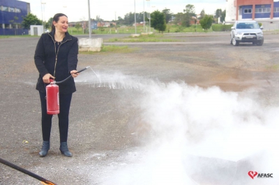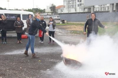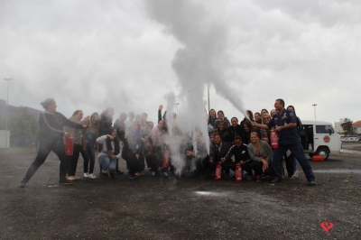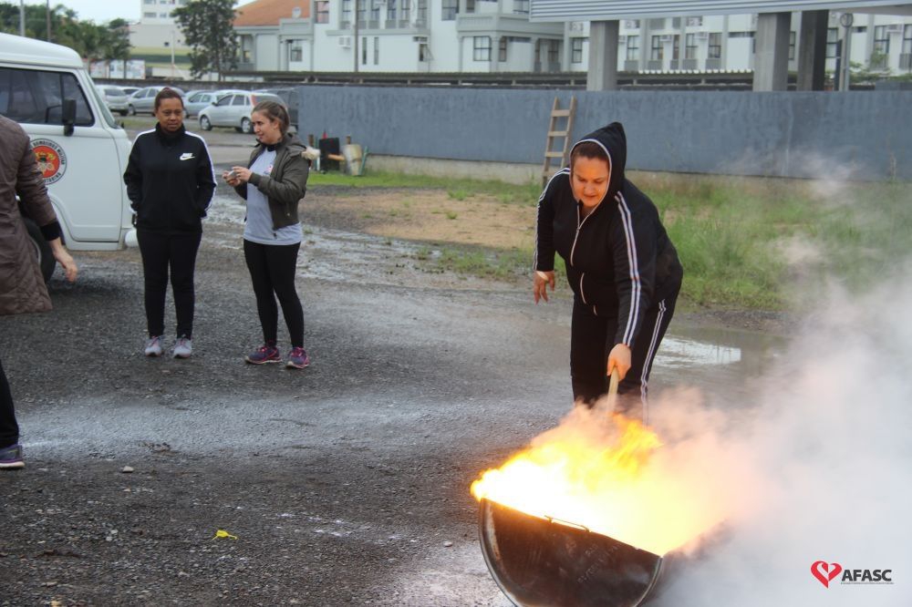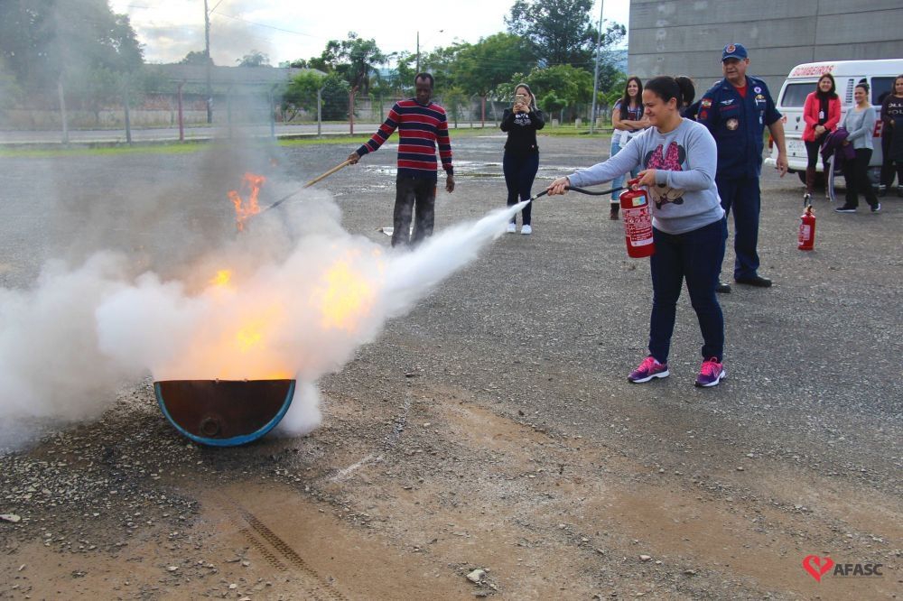 Os profissionais da entidade receberam orientações sobre como realizar os primeiros atendimentos, em caso de emergência, como verificação do nível de consciência, respiração e batimento cardíaco. Em seguida, aprenderam sobre os diferentes tipos de incêndios e quais extintores são indicados para cada situação. Por fim, sob os cuidados do sargento Silveira, colocaram os conhecimentos em prática e apagaram um incêndio controlado.