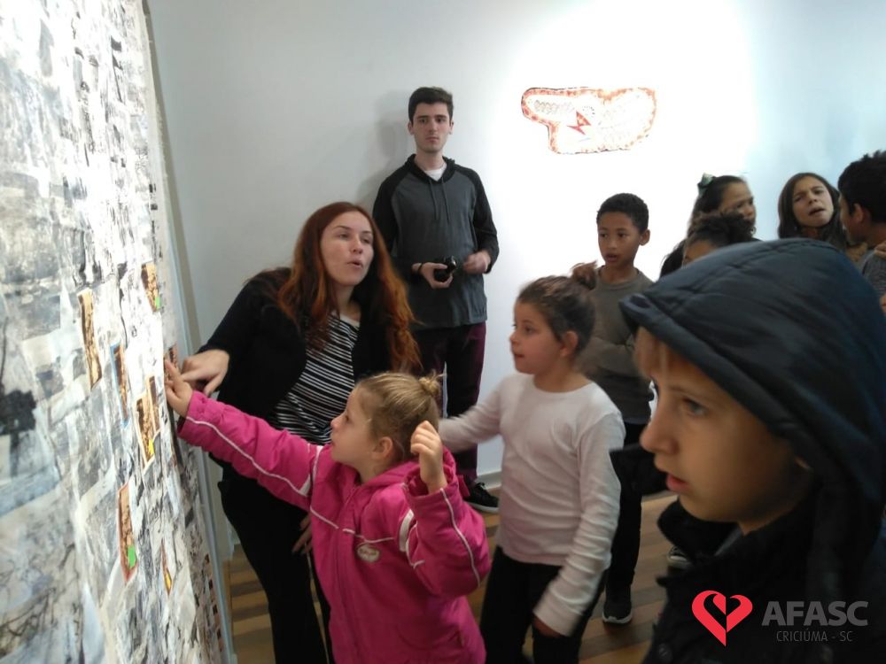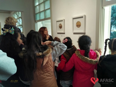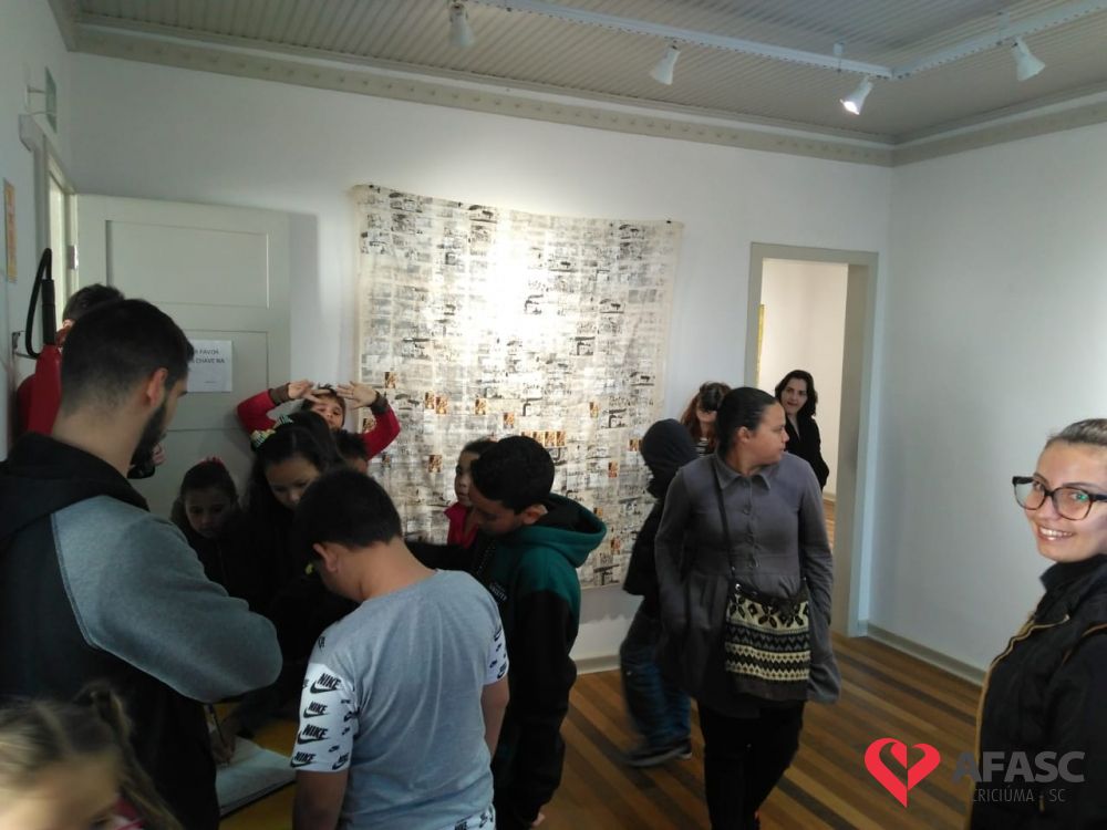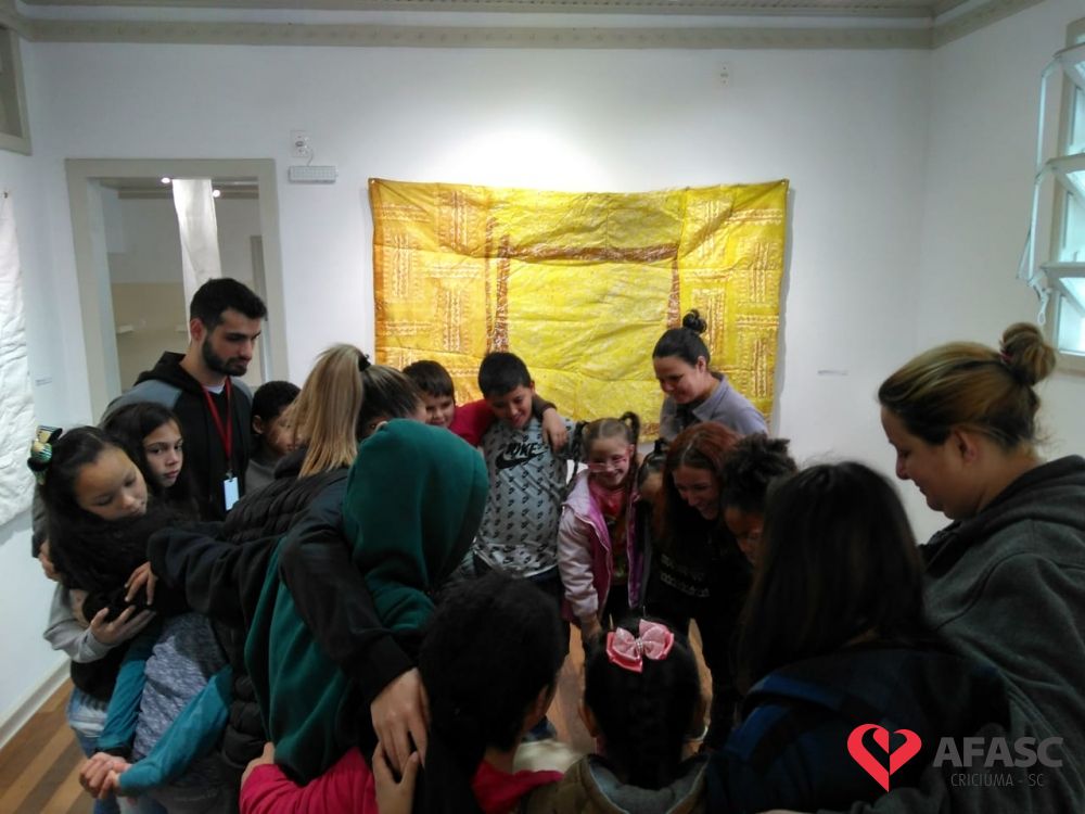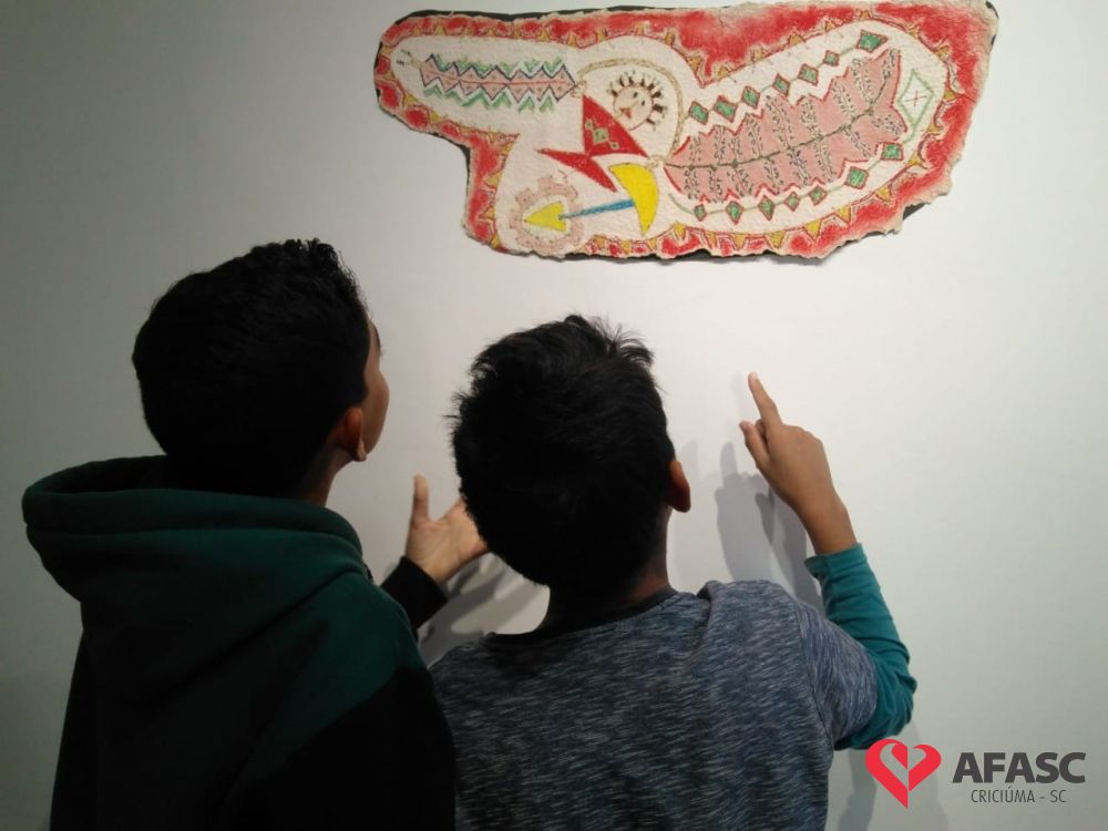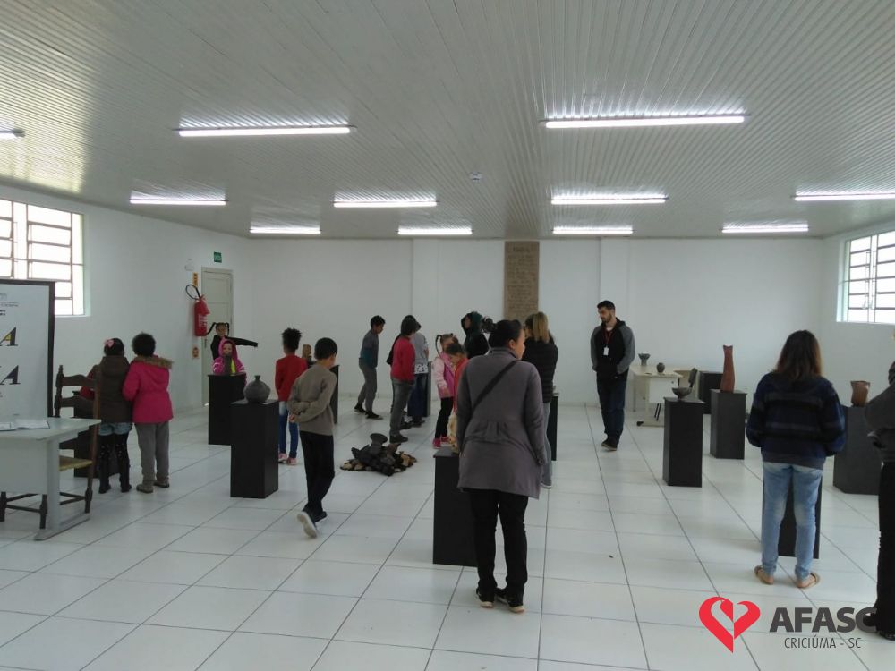 Encerrando a programação da Semana da Família na sexta-feira (16), os participantes do Serviço de Convivência e Fortalecimento de Vínculos (SCFV) do Centro de Referência de Assistência Social (CRAS) Cristo Redentor e sua famílias, visitaram as exposições “Terra e Fogo”, do artista César Pereira e “O Vôo de Ícaro”, da artista Angélica Neumaier, que estão instaladas no Centro Cultural Jorge Zanatta.