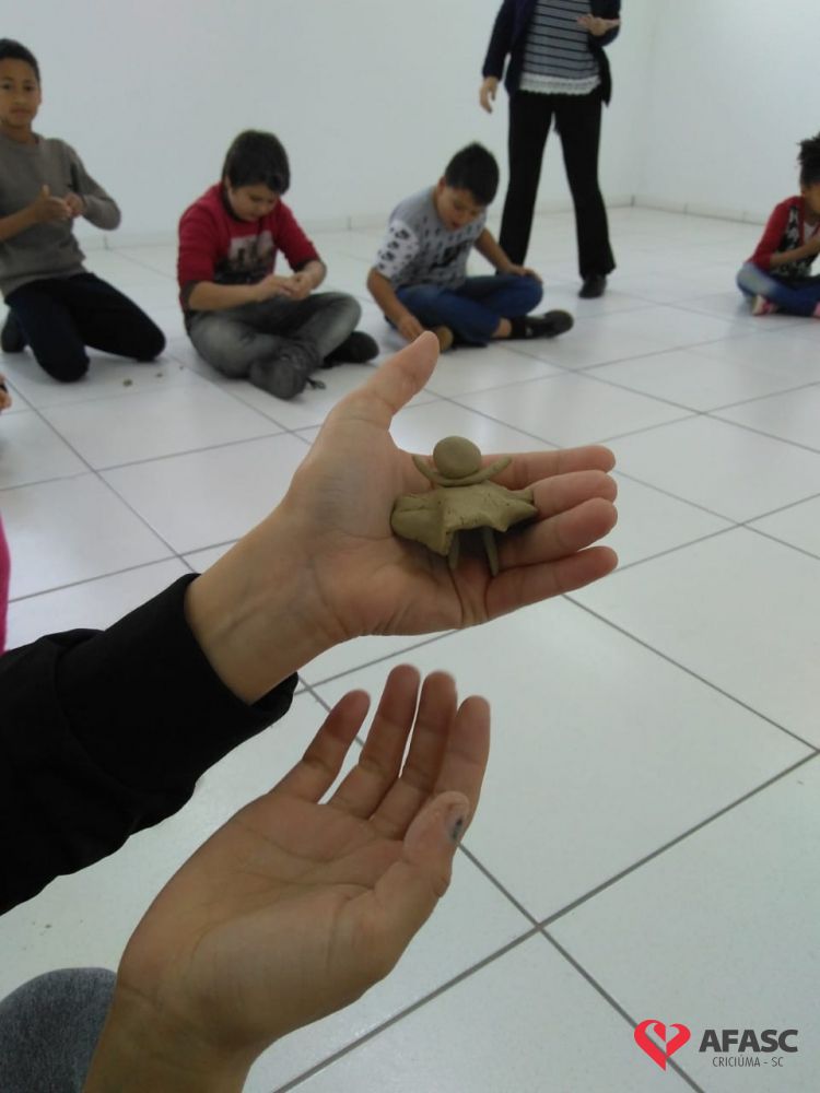 A ação, que foi acompanhada pela orientadora social, Eduarda Varmeling, promoveu momentos descontraídos para crianças, adolescentes e suas famílias, permitiu que os presentes usassem sua imaginação, criando belos trabalhos utilizando argila.