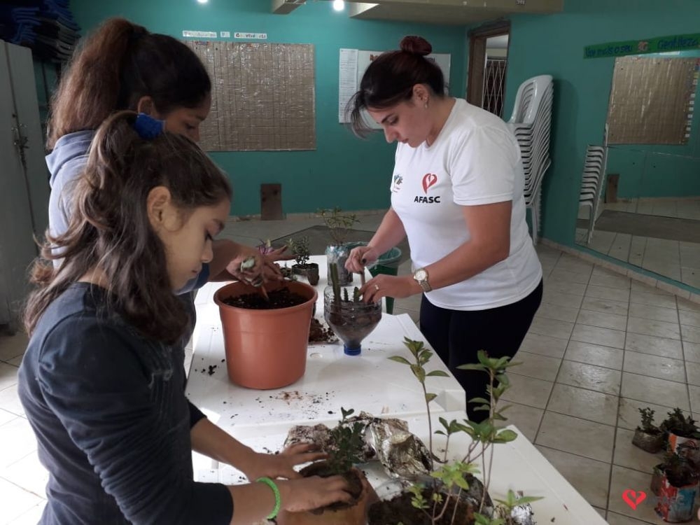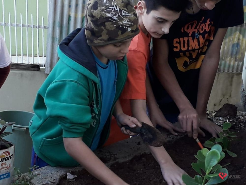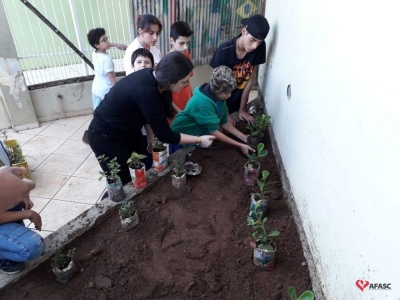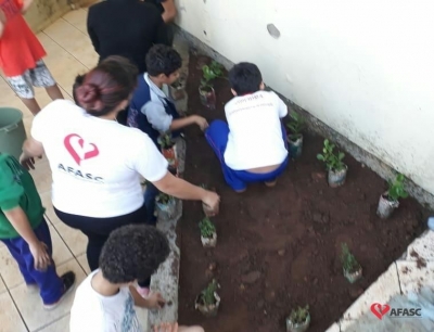 Em alusão ao Dia Mundial do Meio Ambiente, celebrado nessa quarta-feira (5), a equipe Serviço de Convivência e Fortalecimento de Vínculos (SCFV) da Associação Feminina de Assistência Social de Criciúma (Afasc) que atua no Centro de Referência de Assistência Social (CRAS) Próspera realizou uma atividade educativa muito especial para crianças e adolescentes atendidos no espaço. Durante todo o dia, participantes e equipe estiveram envolvidos em uma ação de revitalização do CRAS Próspera, que contou com mutirão de limpeza e plantio de mudas.