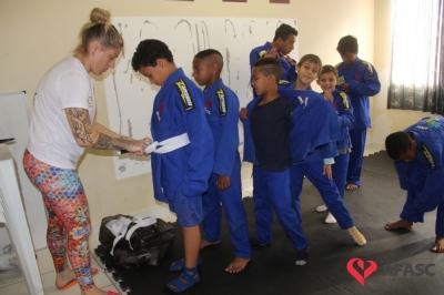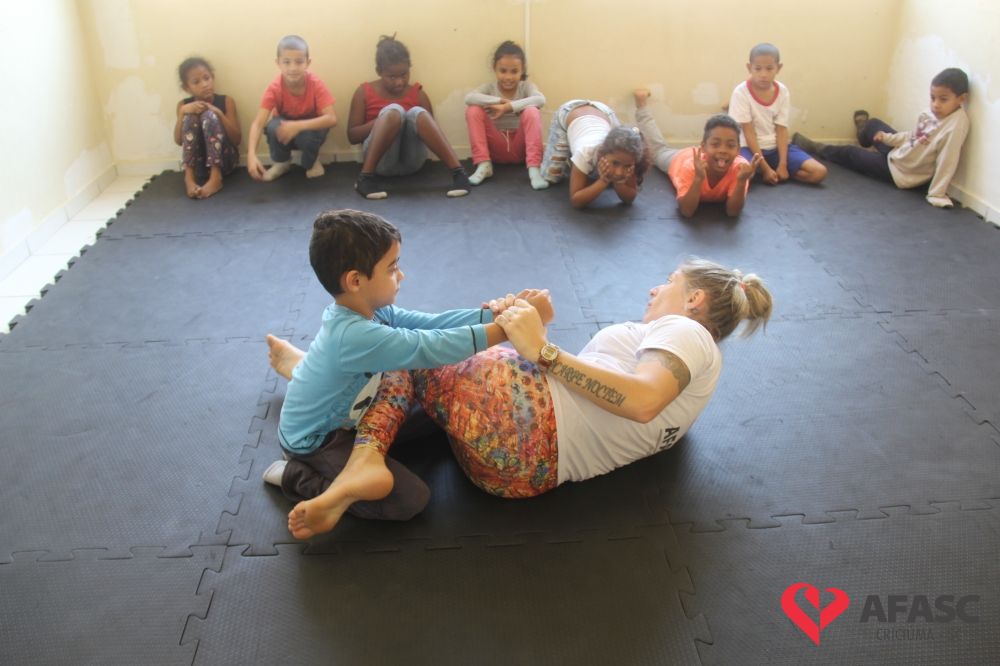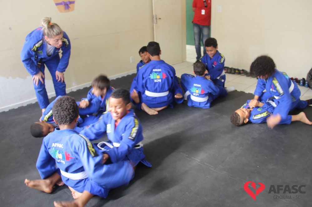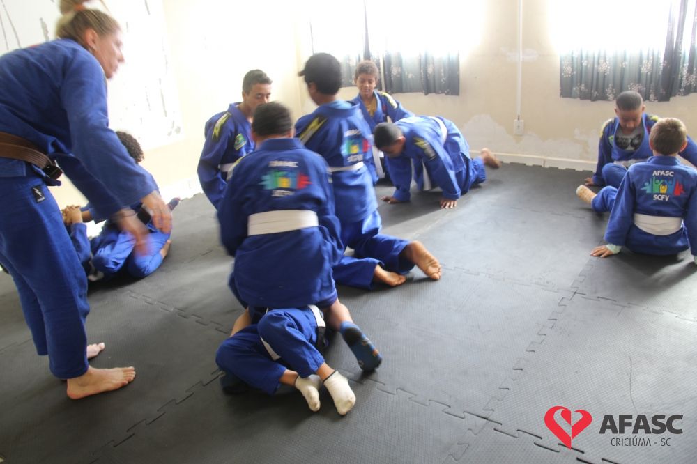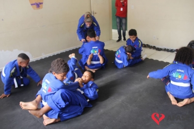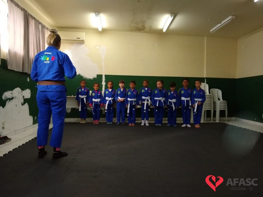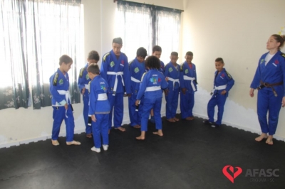Os participantes do Serviço de Convivência e Fortalecimento de Vínculos (SCFV) do Centro de Referência de Assistência Social (CRAS) Renascer estão com uma nova modalidade esportiva. Desde a última quinta-feira (8), crianças e adolescentes estão participando da oficina de Jiu Jitsu, que está sendo desenvolvida pela facilitadora Joana Borsato. A atividade vem com o objetivo de prevenir situações de risco para os participantes, já que eles participam do encontro no contra turno escolar, e visam à melhoria da qualidade de vida.