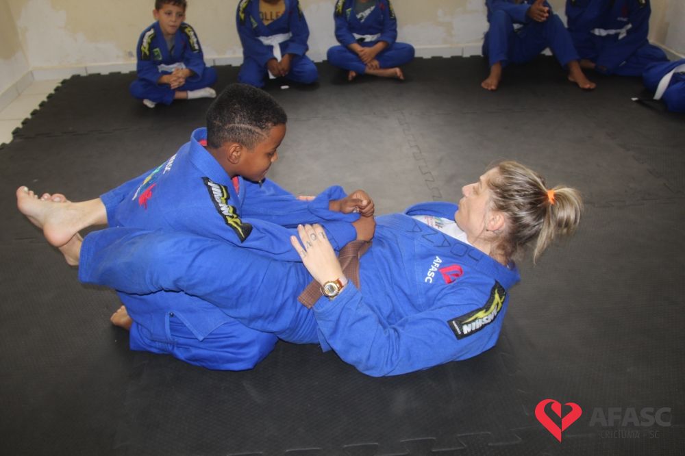 De acordo com a orientadora social, Juliana Arantes, a oficina hoje está atende cerca de 50 crianças, que são divididas em grupos para melhor atendimento dos mesmos. “A prática do Jiu Jitsu, melhora a concentração, o equilíbrio mental, desenvolve o raciocínio, fortalece a autoconfiança, melhora a coordenação motora. Durante no primeiro encontro, a facilitadora ensinou algumas técnicas dessa arte para eles, mas também explicou o quanto é importante ter respeito pelo próximo, ter compromisso, disciplina, caráter, fortalecendo assim os vínculos familiares e comunitários entre crianças e adolescentes”, destaca.