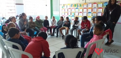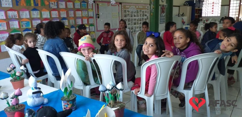 A atividade contou com rodas de conversas e apresentações das crianças, possibilitando que quem passou pelo espaço pudesse ver o trabalho desenvolvido.