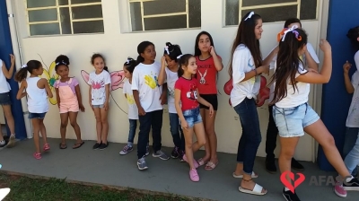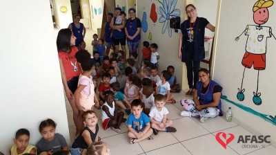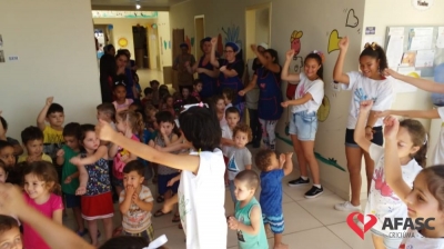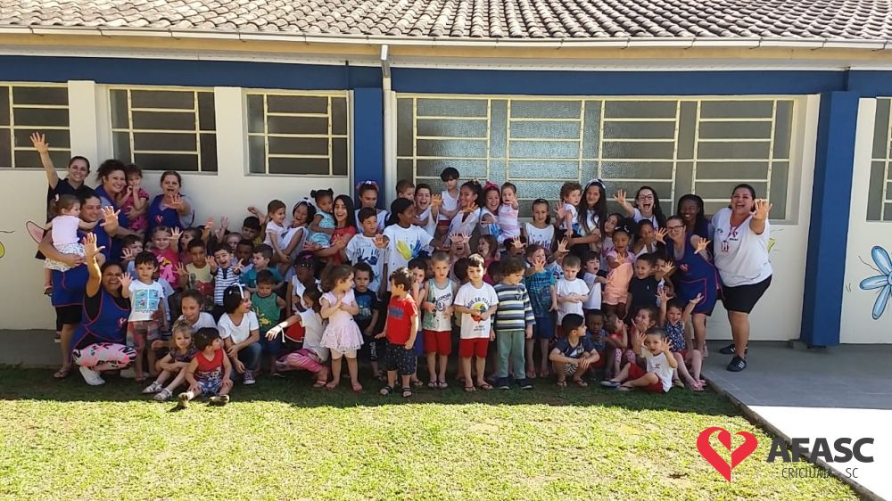 Uma atividade integrada entre o Serviço de Convivência e Fortalecimento de Vínculos (SCFV) do Centro de Referência de Assistência Social (CRAS) Vila Miguel e o Centro de Educação Infantil (CEI) da Associação Feminina de Assistência Social de Criciúma (Afasc) Professor jairo Luiz Thomazi foi realizada nesta quinta-feira (10), em alusão a Semana da Criança. Na oportunidade, os participantes do Serviço de Convivência que visitaram a creche, realizaram a entrega simbólica de 42 mil tampinhas para a campanha do Departamento de Educação Infantil (DEI). As tampinhas foram arrecadas pela Escola de Educação Básica Salete Scotti dos Santos, através de uma gincana e doadas ao SCFV Vila Miguel.