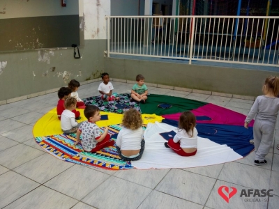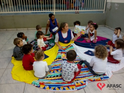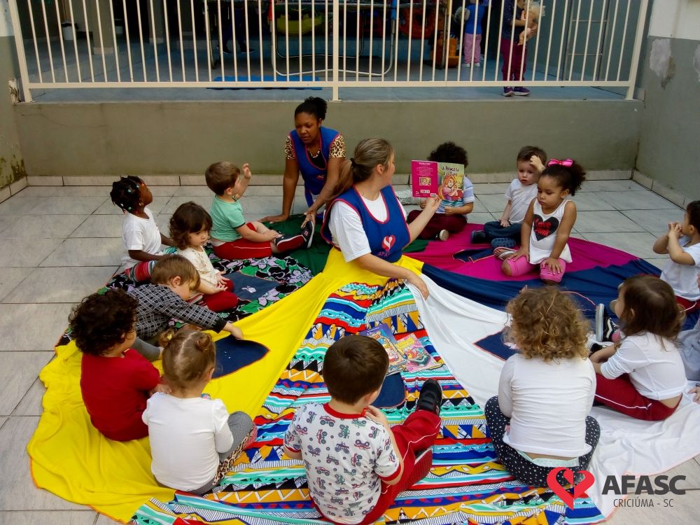 As crianças do Grupo III B do Centro de Educação Infantil (CEI) da Associação Feminina de Assistência Social de Criciúma (Afasc) Deputado Ulysses Guimarães estão descobrindo um novo mundo através da literatura e imaginação por meio do projeto “Contos e brincadeiras”, que está sendo desenvolvido pelas professoras Mirielle da Rosa e Regina Fortunato.