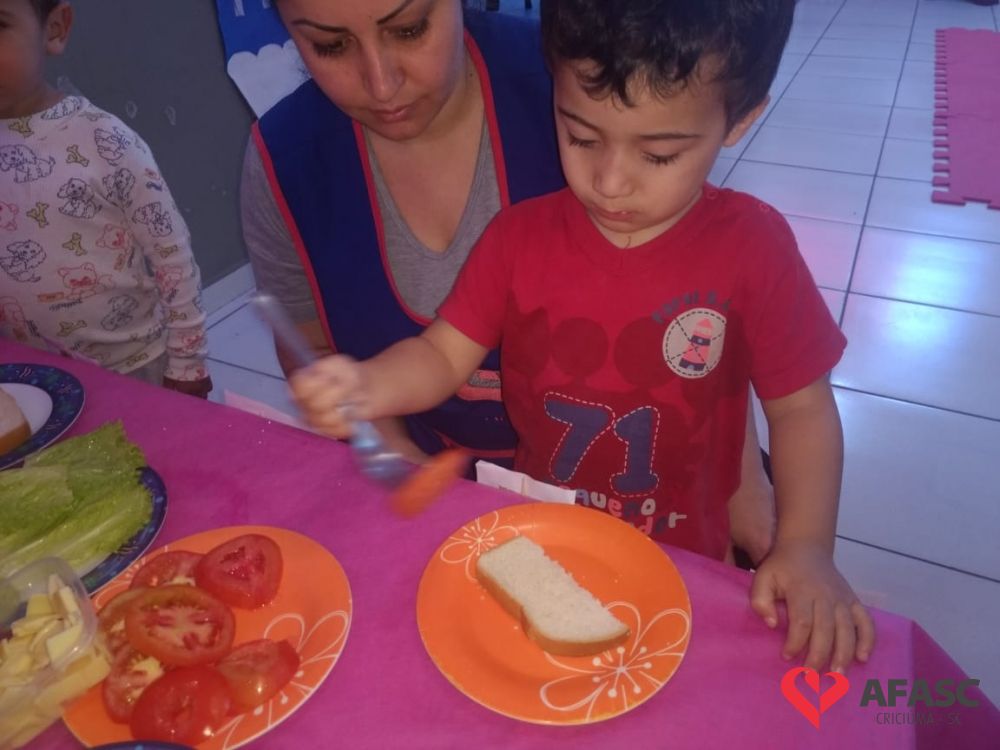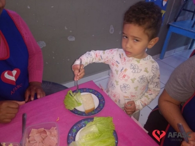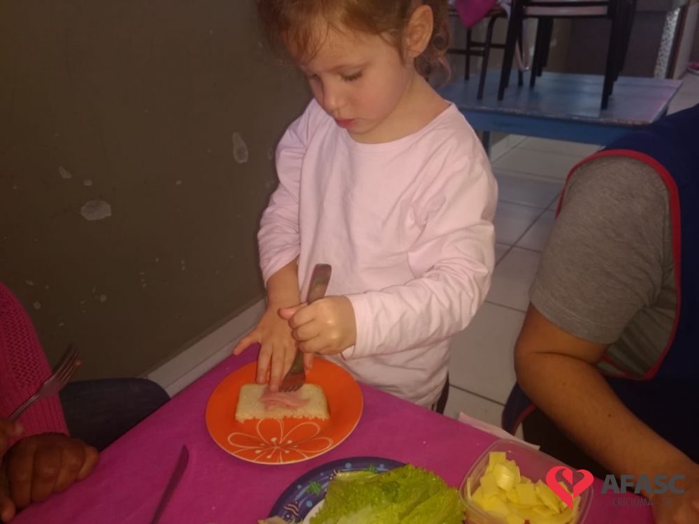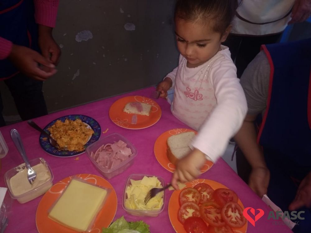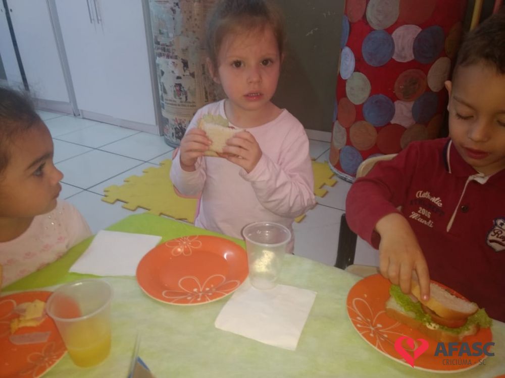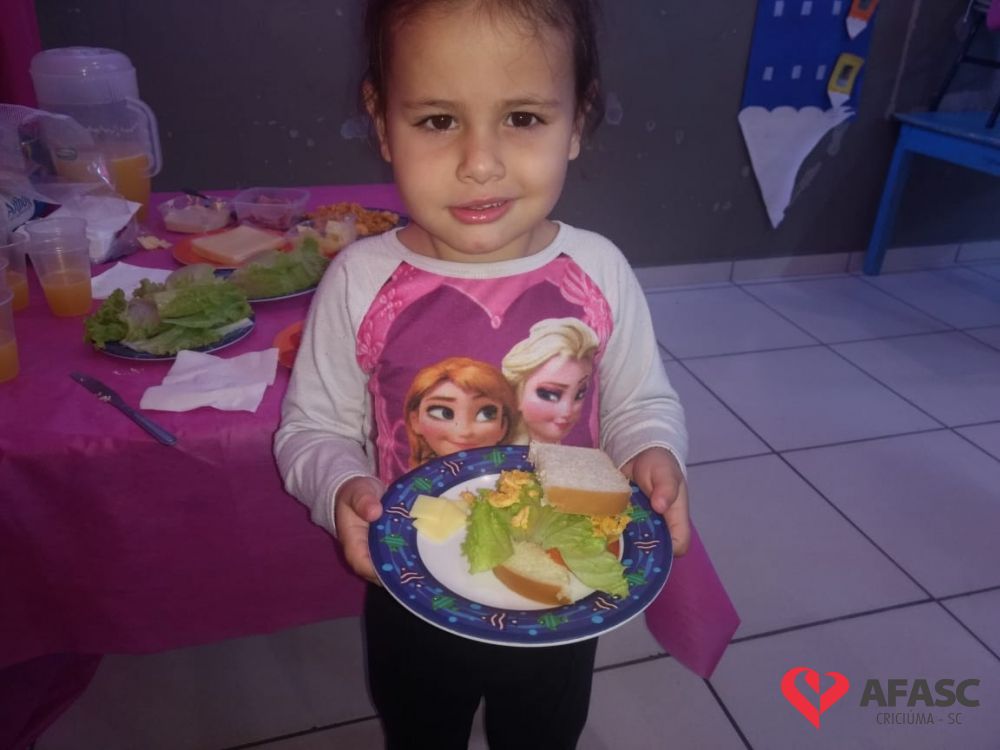 Conforme Camila é importante que se ensine desde pequeno a importância de comer bem e principalmente os alimentos corretos. “Conversamos muito sobre alimentação saudável e na sequencia cada um montou seu sanduíche. Foi uma atividade muito divertida, pois eles puderam escolher o que colocar no seu lanche, e viram o quanto comidas saudáveis são gostosas”, comenta.