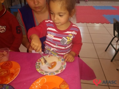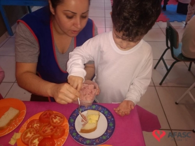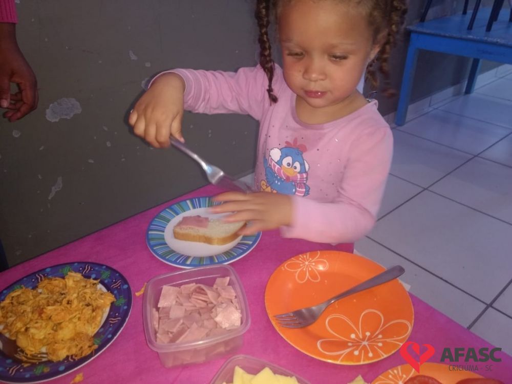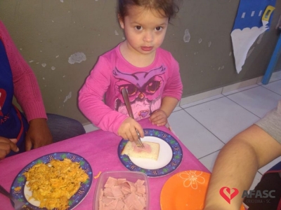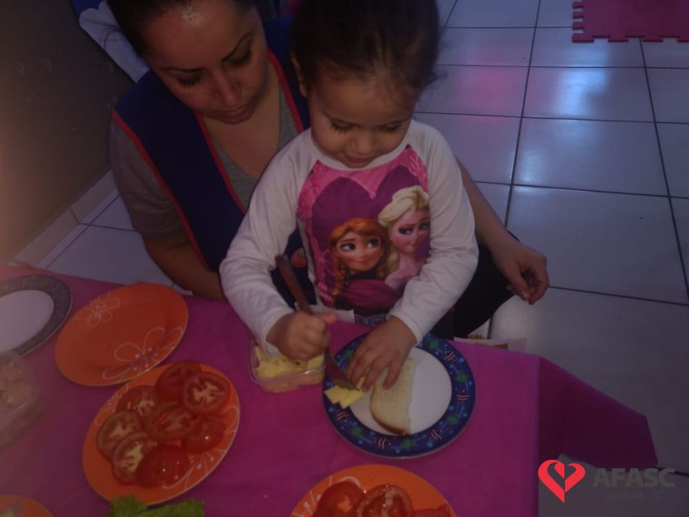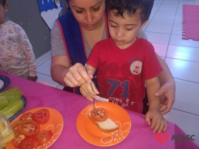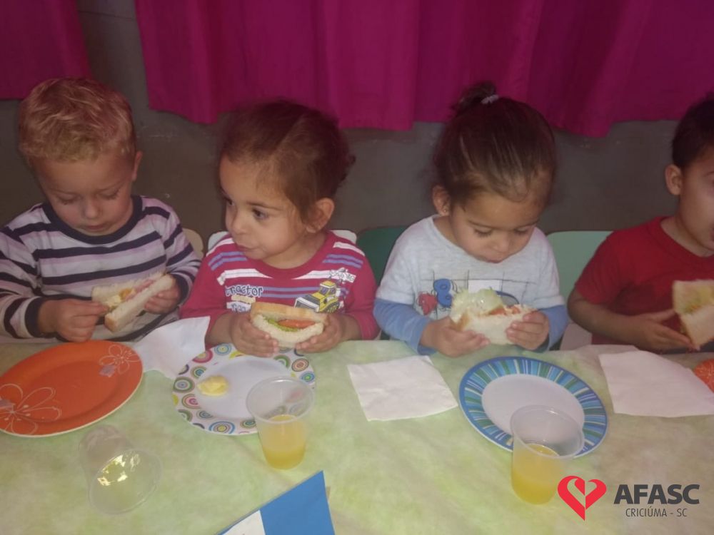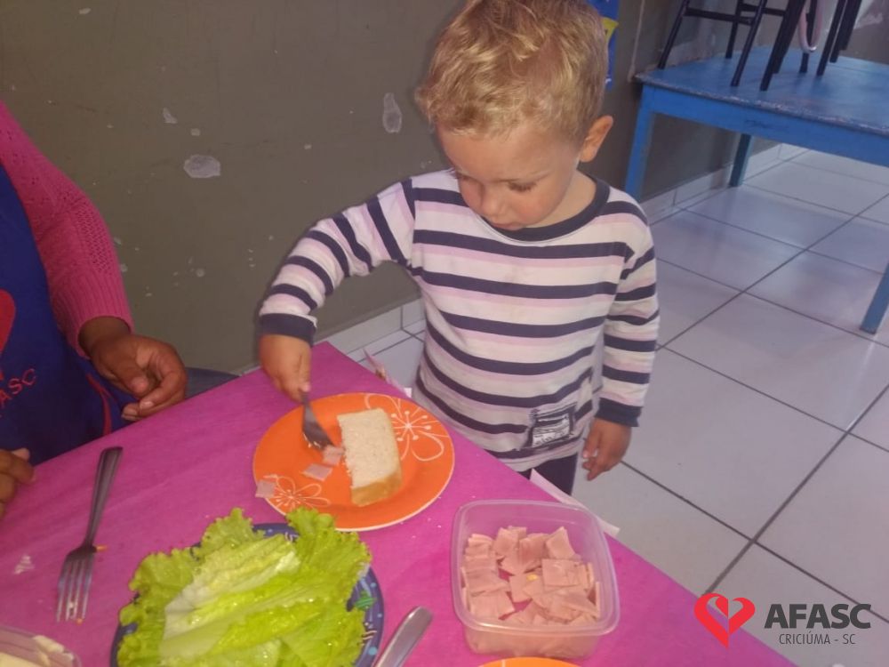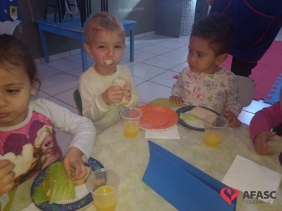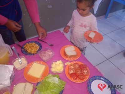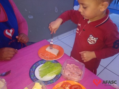 Conforme Camila é importante que se ensine desde pequeno a importância de comer bem e principalmente os alimentos corretos. “Conversamos muito sobre alimentação saudável e na sequencia cada um montou seu sanduíche. Foi uma atividade muito divertida, pois eles puderam escolher o que colocar no seu lanche, e viram o quanto comidas saudáveis são gostosas”, comenta.