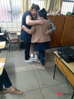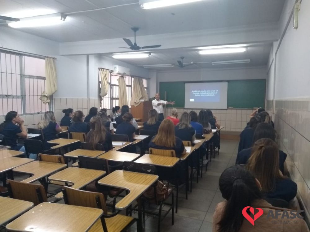 A Associação Feminina de Assistência Social de Criciúma (Afasc), por meio do Departamento de Educação Infantil (DEI), reuniu nessa terça-feira (10), na Faculdades Esucri, as 32 secretárias que atuam nos Centros de Educação Infantil (CEI) da entidade para uma formação. Durante o primeiro período do encontro, as profissionais foram orientadas sobre revisões do sistema e funções administrativas dentro das creches; já na segunda etapa, elas participaram de palestra com o coach Renato Schultz, que trabalhou o tema “Qualidade de vida no trabalho, seja feliz naquilo que você se propõe a fazer”.
