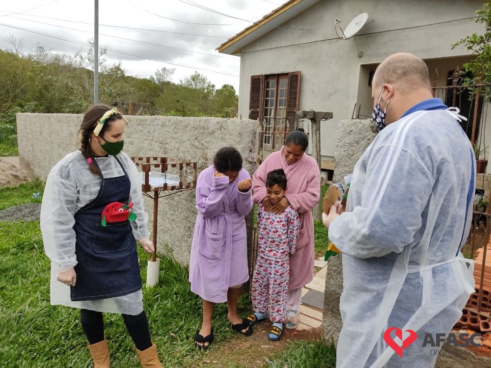 Essa ação faz parte do projeto do Serviço de Convivência de zero a 17 anos da Associação Feminina de Assistência Social de Criciúma (Afasc), “Me conta da tua janela”, que está sob a orientação da coordenadora Maria Lauridia da Silva.